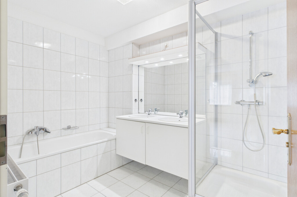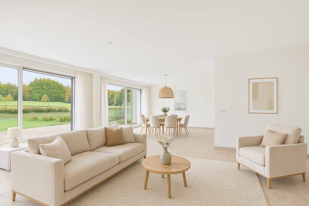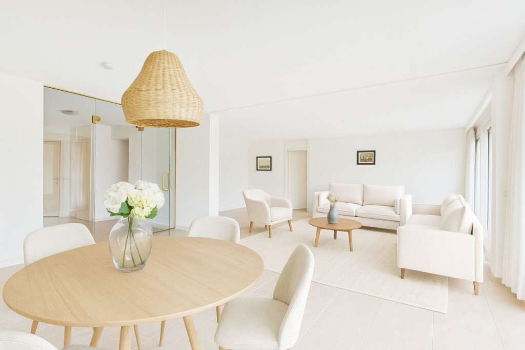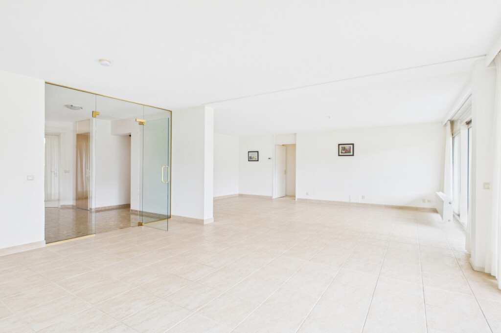 Grenzend aan de woonkamer ligt een extra slaapkamer die zich perfect leent als gastenverblijf, werkkamer of zelfstandige suite. De eigen badkamer met douche en wastafelmeubel maakt deze ruimte bijzonder comfortabel en veelzijdig in gebruik. De masterbedroom is royaal opgezet en straalt rust uit. De aangrenzende en-suite badkamer is luxe uitgevoerd met een ruime inloopdouche, dubbel wastafelmeubel, bidet en een tweede toilet. Twee bijkomende slaapkamers, beide ruim en licht, delen een derde badkamer met douche, ligbad en modern wastafelmeubel. Alle ruimtes zijn afgewerkt met hoogwaardige materialen en hebben een verzorgde, harmonieuze uitstraling.