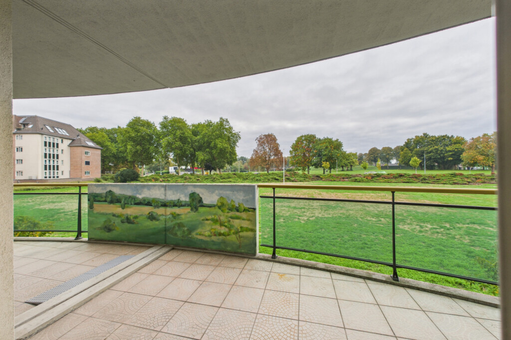 Ook buiten is het heerlijk vertoeven. Het balkon op het zuiden is een verlengstuk van de woonkamer en biedt de perfecte plek om in alle rust van de zon te genieten. Dankzij het weidse uitzicht over de stadswallen en het groen rondom voelt het alsof je midden in de natuur zit, terwijl het stadsleven zich op loopafstand bevindt.