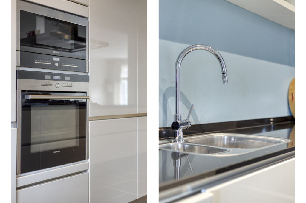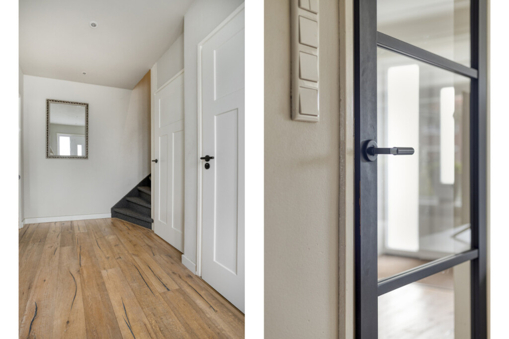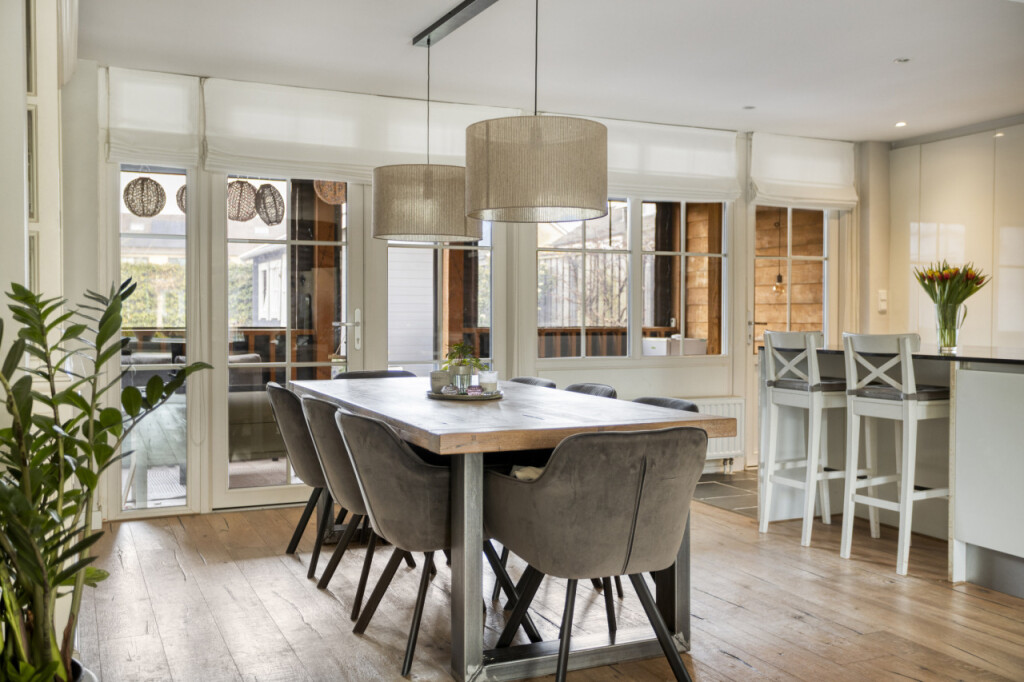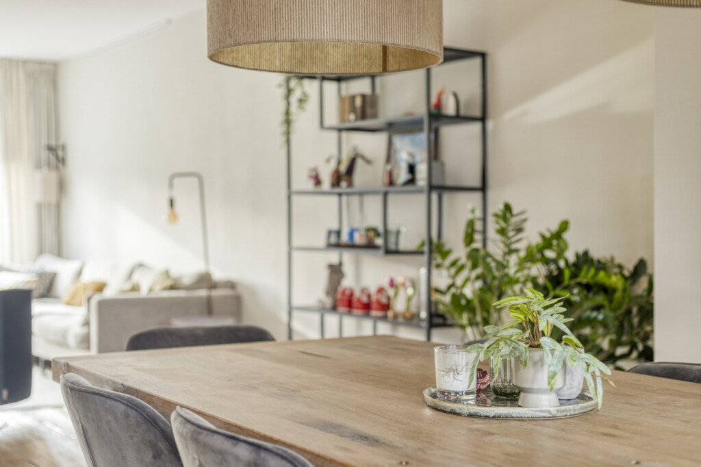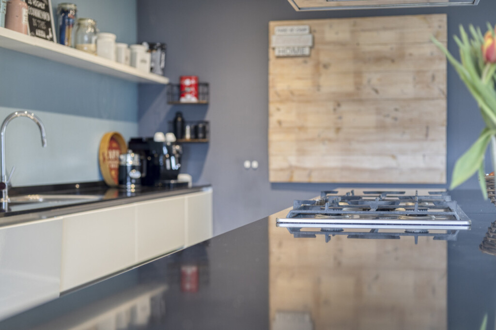 Via de hal, met toegang tot het toilet met fonteintje, kom je in de woonkamer. De woonkamer is prettig licht en staat in open verbinding met de keuken. De keuken is modern uitgevoerd en voorzien van een kookeiland met 5-pits gaskookplaat, vaatwasser, koelkast, vriezer, oven en magnetron.