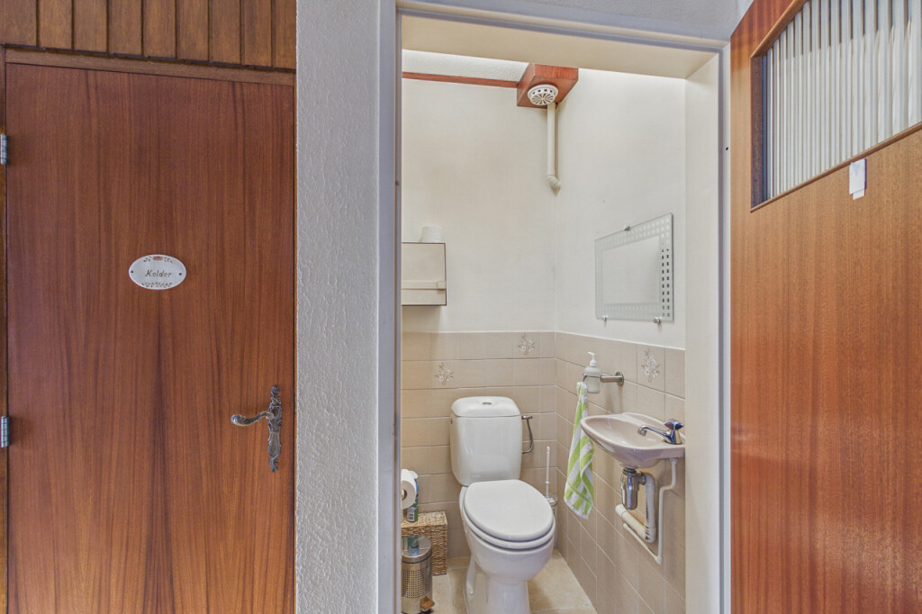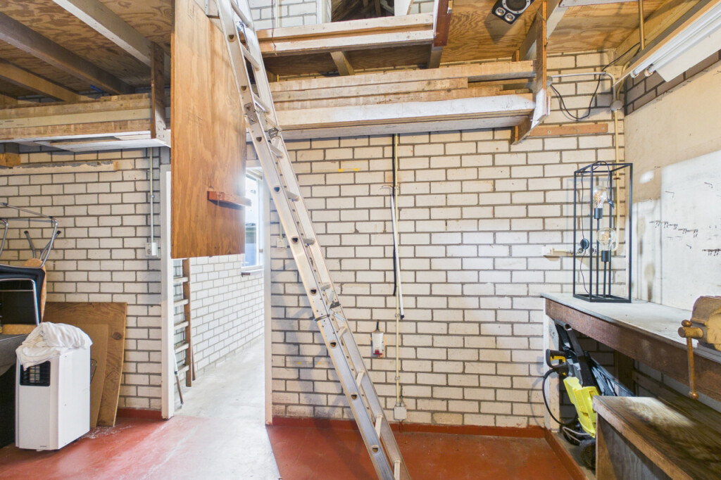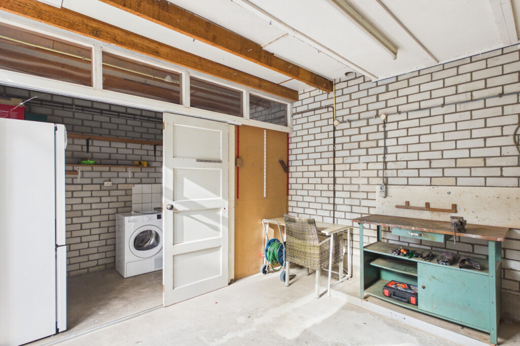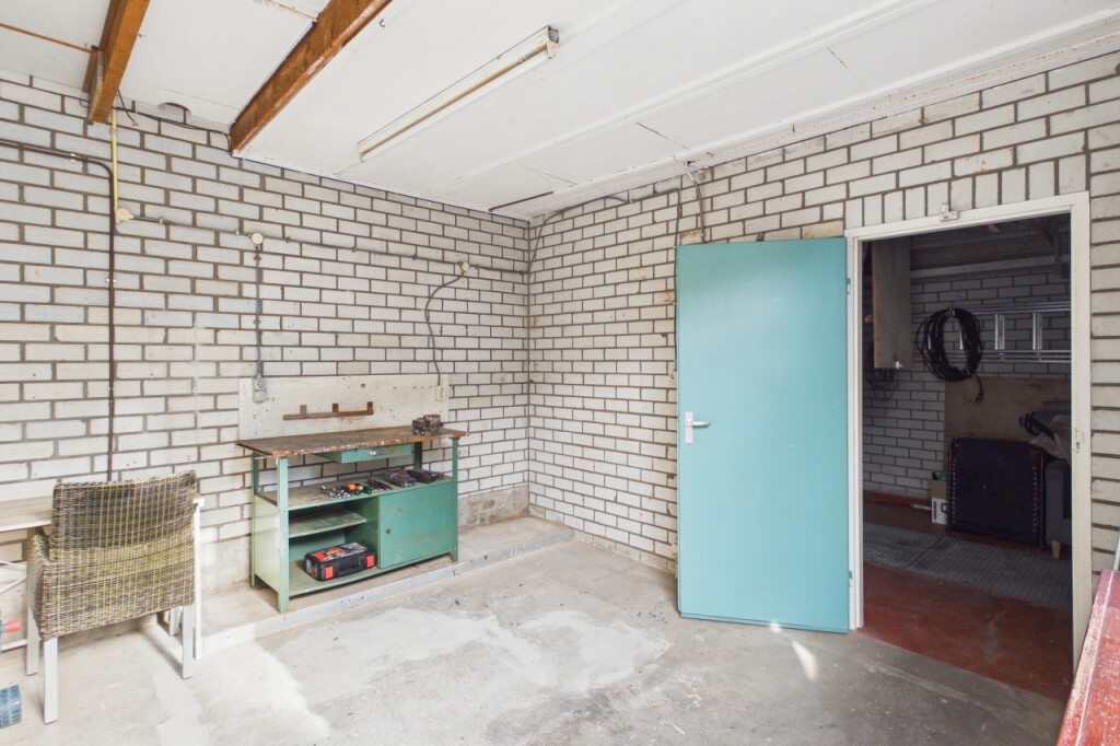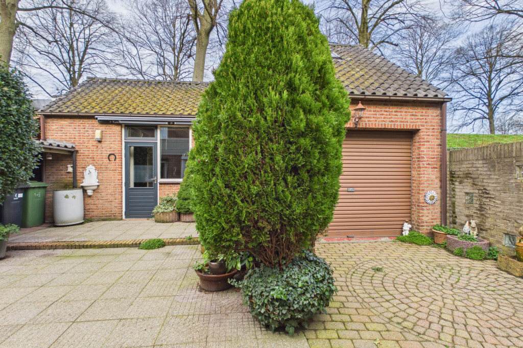 De nette achtertuin beschikt over een stenen berging met witgoedaansluitingen en een eigen warmwaterboiler. De kers op de taart is de vrijstaande stenen garage. Deze is niet alleen voorzien van elektra, water en een vliering, maar beschikt ook over een smeerput (ideaal voor de hobbyist) en een loopdeur die direct uitkomt op de wallen. Daarnaast is er voldoende ruimte om twee auto’s op de eigen oprit naast de woning te parkeren.