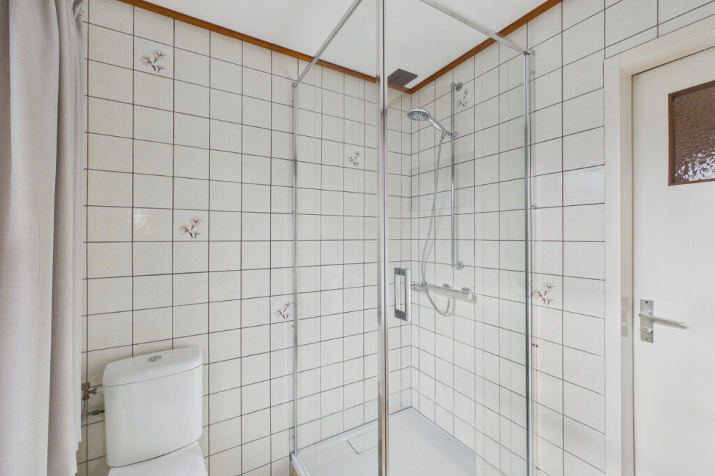 Hier bevinden zich 3 volwaardige slaapkamers en de badkamer, uitgerust met een douchecabine, badkamermeubel en een tweede toilet. Ook de cv-ruimte (Remeha combiketel, 2004) bevindt zich op deze etage.