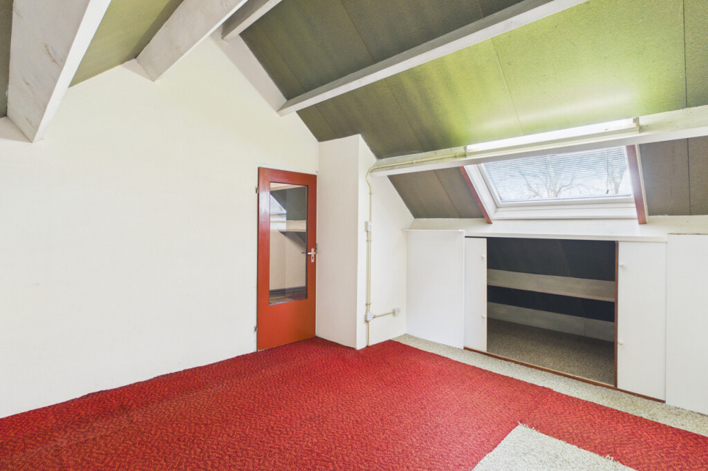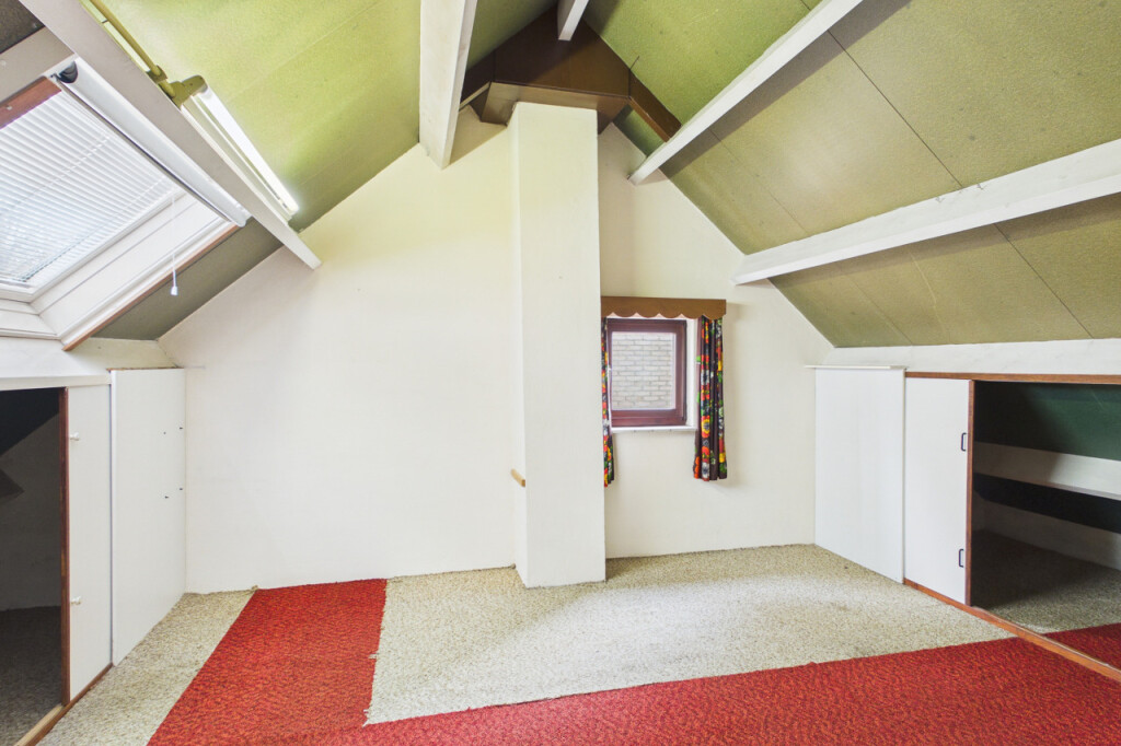 Bereikbaar via een vaste trap. Hier vind je de royale 4de slaapkamer en slimme opbergruimte achter de knieschotten.