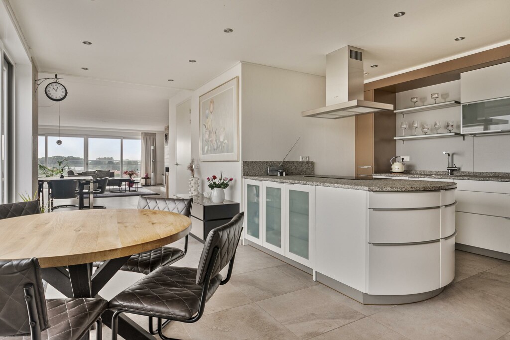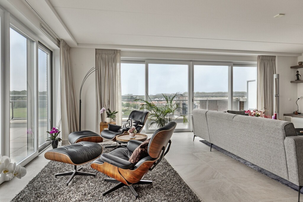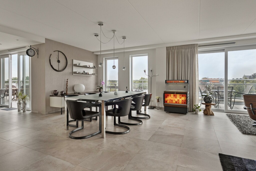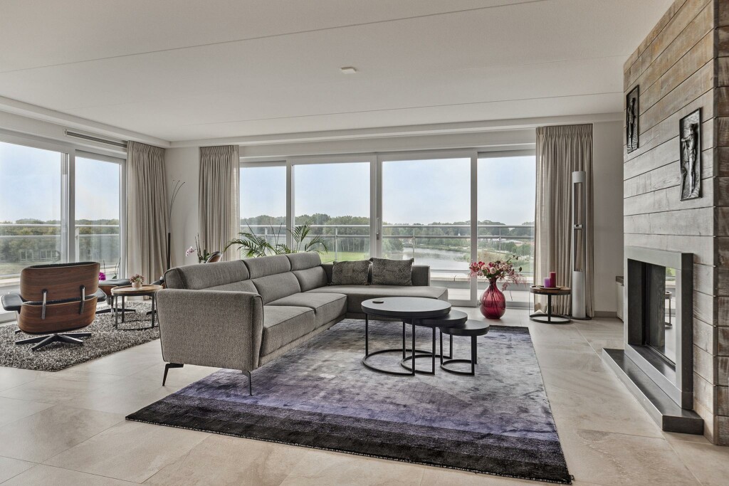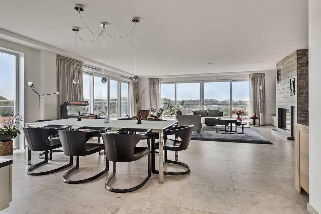 De woonkamer van bijna 70m² is het hart van het penthouse, grote raampartijen zorgen voor een heerlijke lichtinval en bieden een spectaculair uitzicht.