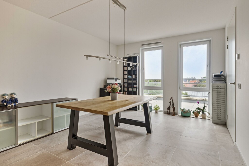 Een prachtige ruimte om vanuit thuis te kunnen werken in privacy en toch in contact te staan met het woongedeelte.