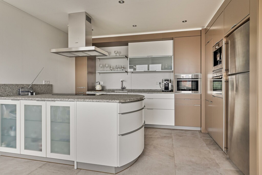 De keuken, met directe toegang tot een tweede terras van maar liefst 70m², is voorzien van hoogwaardige apparatuur.
