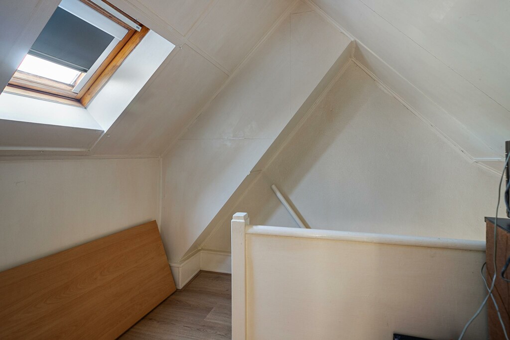 Middels een vaste trap komt u op de ruime zolderverdieping. De overloop heeft een bergruimte en de c.v-installatie (Vaillant ’19). De 4e slaapkamer heeft een dakraam.