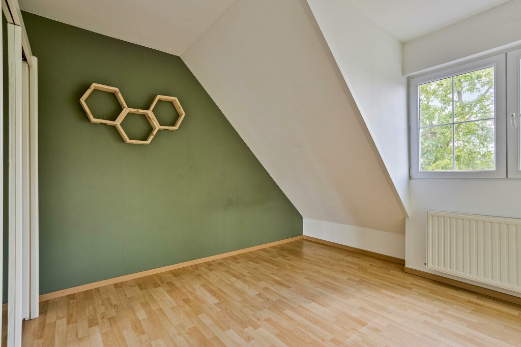 Op de verdieping bevinden zich vier comfortabele ruime slaapkamers, ideaal voor grotere gezinnen of voor wie thuis wilt werken. De woning beschikt daarnaast over een grote bijkeuken met veel bergruimte, de aansluitingen voor de wasmachine/droger en een extra toiletruimte. De diepe garage biedt ruimte voor 2 auto’s of 1 auto én bijvoorbeeld fietsen, gereedschap of een werkbank; ideaal voor wie graag klust of extra opslag zoekt. De achtertuin is opvallend diep en biedt veel privacy en zon, een fijne plek om te ontspannen, te tuinieren of om kinderen veilig te laten spelen.