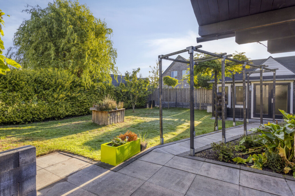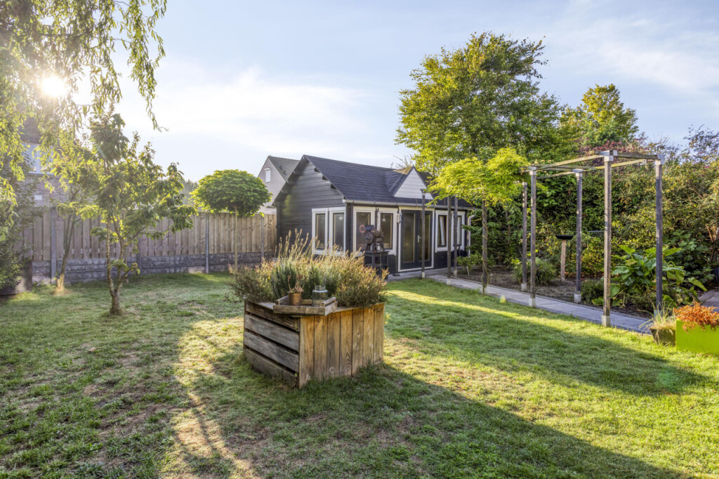 Achter de woning bevindt zich een verrassend diepe en zonnige tuin, waar rust en privacy samenkomen. Hier geniet je na een drukke dag van het buitenleven, met een drankje in je eigen âtuincaféâ dat is ondergebracht in het royale tuinhuis. Voor extra opslag is er bovendien een aparte berging aanwezig.