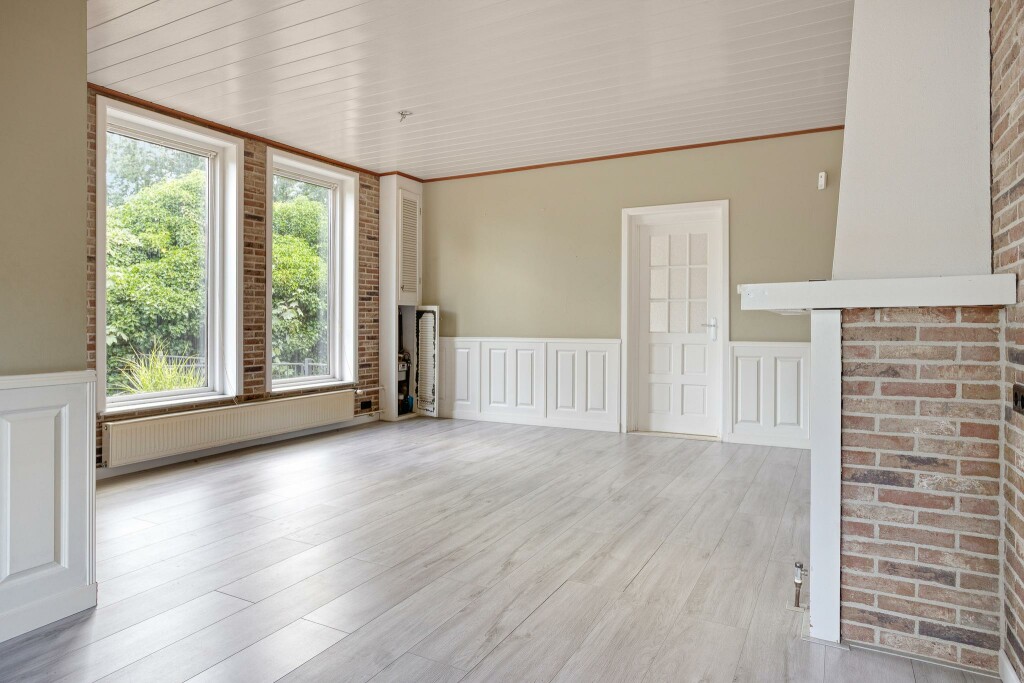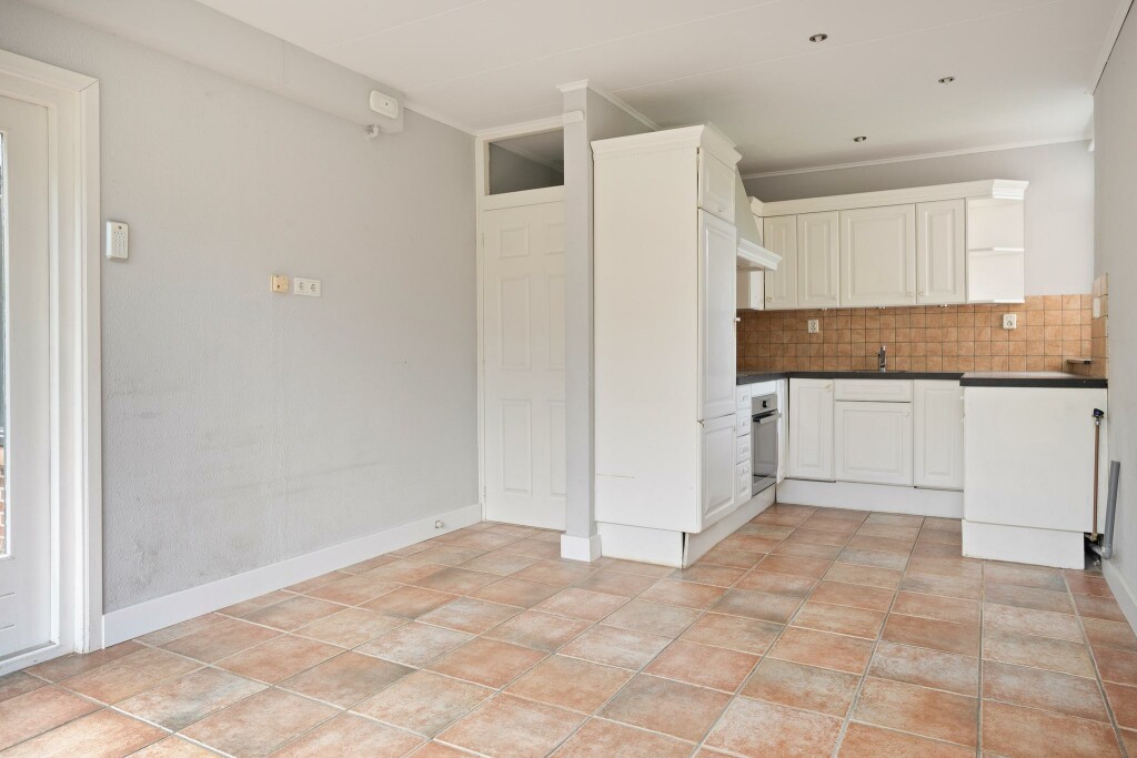 De woonkamer is heerlijk licht, heeft een nieuwe laminaatvloer en fraaie lambrisering. In de woonkamer treft u de meterkast. Vanuit de woonkamer toegang tot een ruime uitbouw met een grote leefkeuken met dubbele tuindeuren. De keuken heeft een U-opstelling en is voorzien van een elektrische kookplaat, oven, koelkast en afzuigkap. Vanuit de keuken een halletje met toilet en een ruime slaapkamer. Verder treft u hier een nette badkamer, voorzien van een ligbad en wasmeubel. In de handige bijkeuken treft u de wasmachine aansluiting en de c.v-installatie (‘19). Tevens is hier een grondwaterbron (zonder pomp).