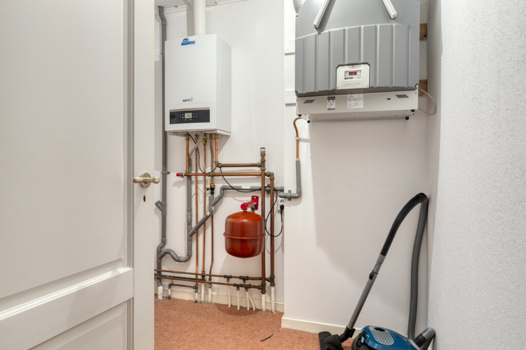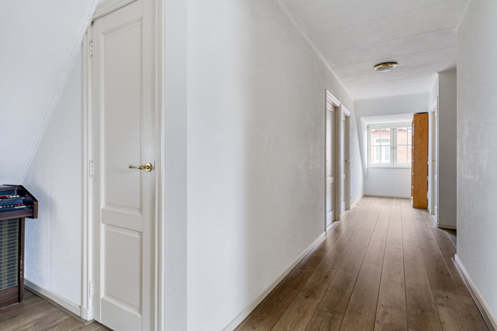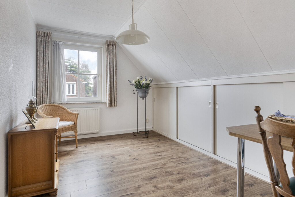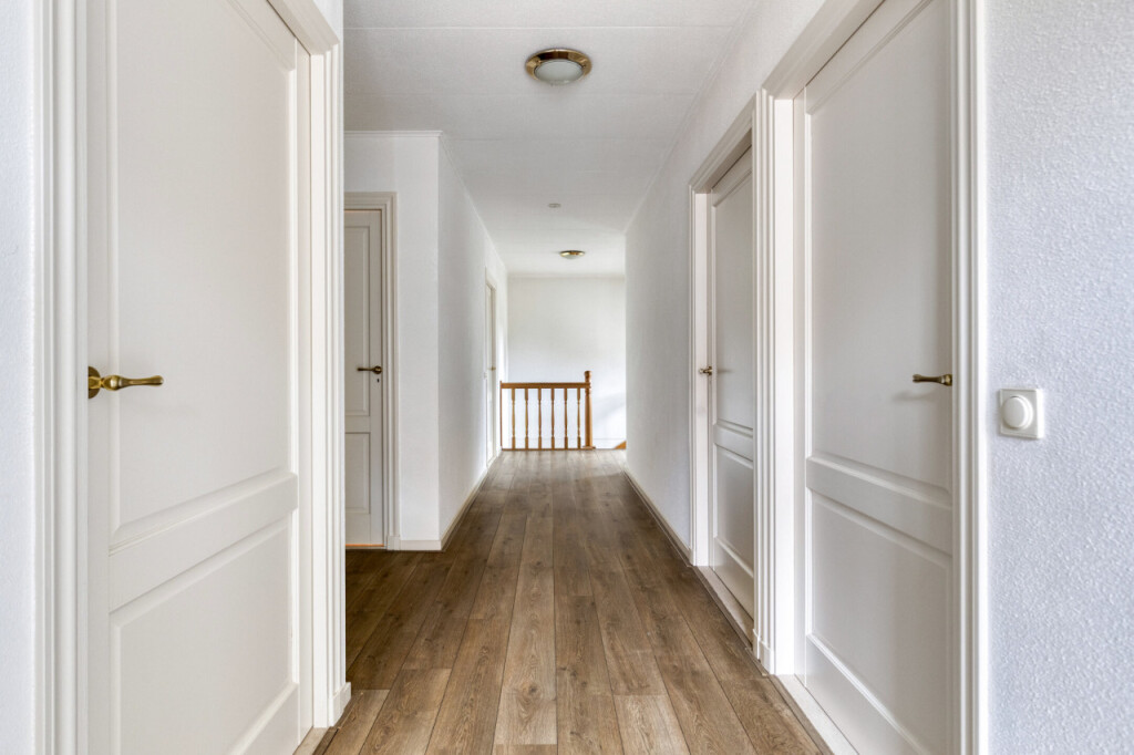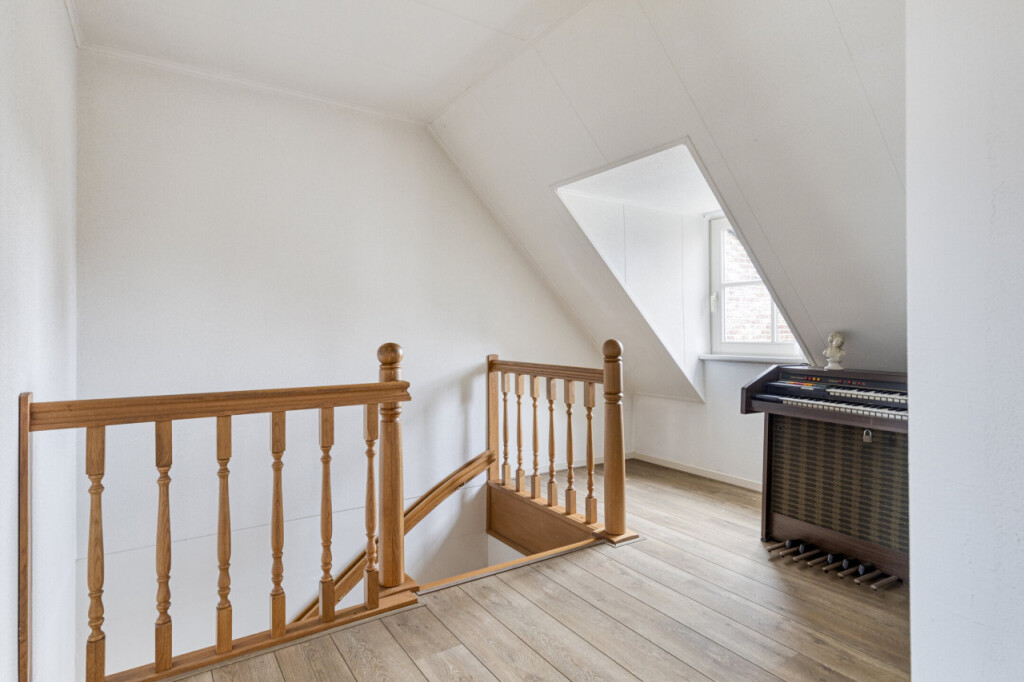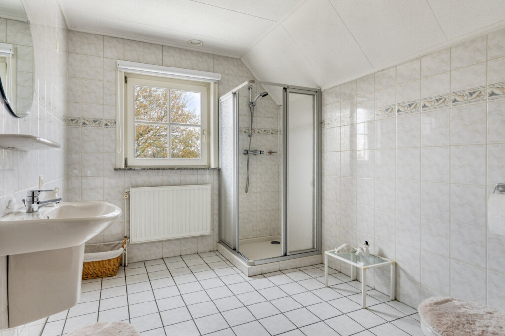 Via de vaste trap kom je op de verdieping met maar liefst vier ruime slaapkamers. Ook vind je hier de technische ruimte met de cv-ketel en balansventilatie, evenals de tweede badkamer. Deze badkamer is uitgerust met een douche, toilet en wastafel.