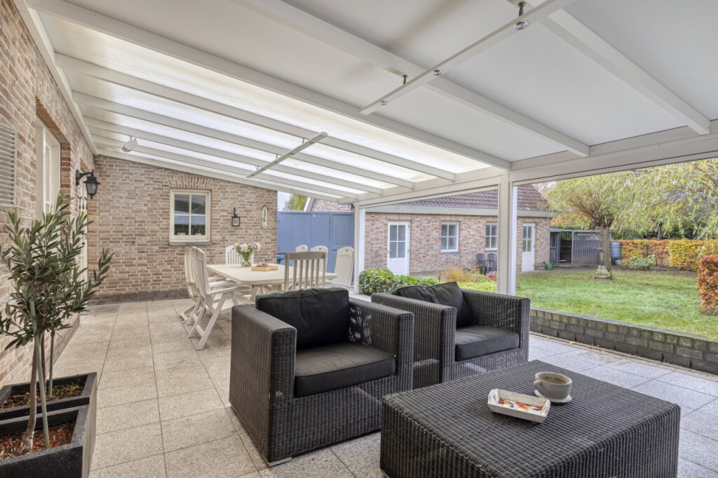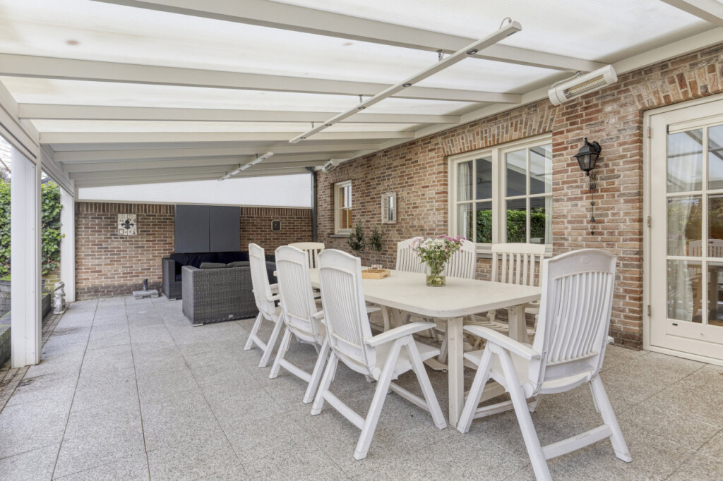 De achtertuin is een echte verrassing: extra diep, heerlijk privé en gelegen op het zuidwesten. Onder de overkapping zit je al vroeg in het voorjaar comfortabel dankzij de elektrische verwarming. De overkapping is bovendien voorzien van verlichting en elektrische zonnescreens, waardoor je hier het hele jaar door een fijne plek hebt.