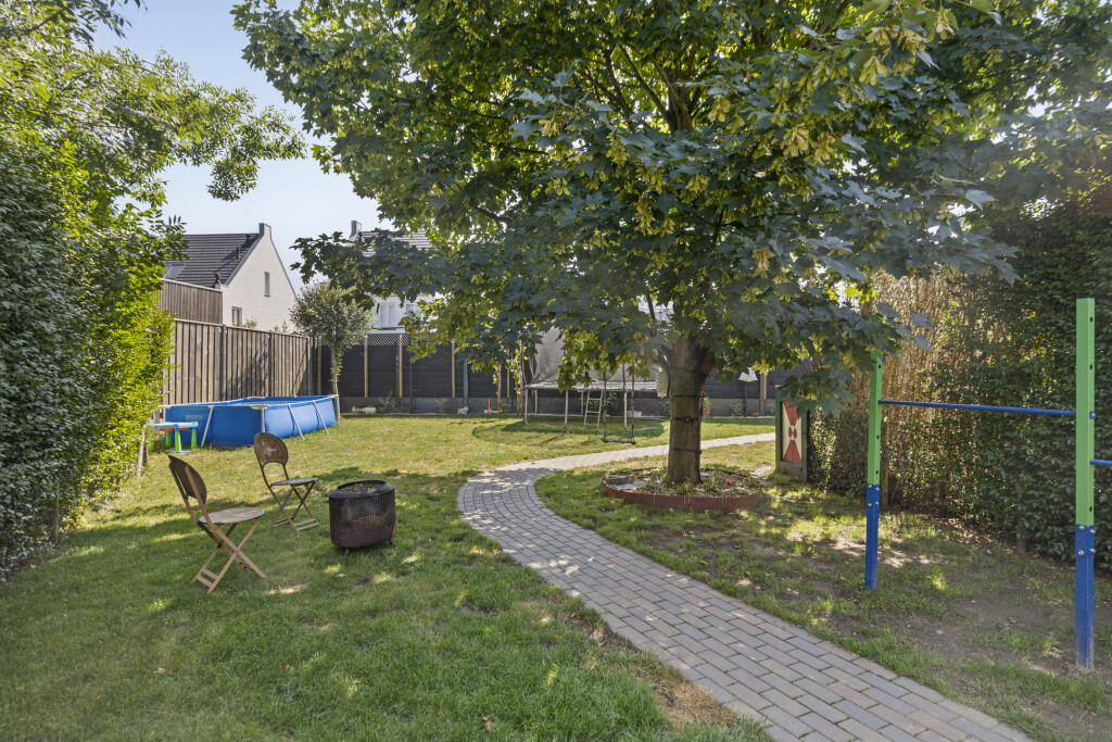 De diepe, zonnige tuin op het zuiden is een groene oase vol rust en privacy. Je vindt er een prieeltje, een ruime stenen schuur in historische stijl en een achterom via het zijpad. De achtergevel van de woning, opgebouwd uit 17e-eeuwse bakstenen, is een plaatje op zich.