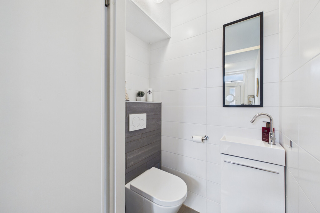 Je komt de woning binnen in de hal met meterkast, trapopgang naar de eerste verdieping en een modern toilet met fonteintje. Vanuit de hal stap je de lichte doorzonwoonkamer binnen, voorzien van een eikenhouten vloer. Aan de voorzijde geniet je van een mooi, vrij uitzicht over de waterpartij. De halfopen keuken is geplaatst in een hoekopstelling en uitgerust met een keramische kookplaat, afzuigkap, combi-oven, koelkast, vaatwasser, spoelbak en een handige apothekerskast. Vanuit de keuken heb je toegang tot de achtertuin, met een aangebouwde overkapping.