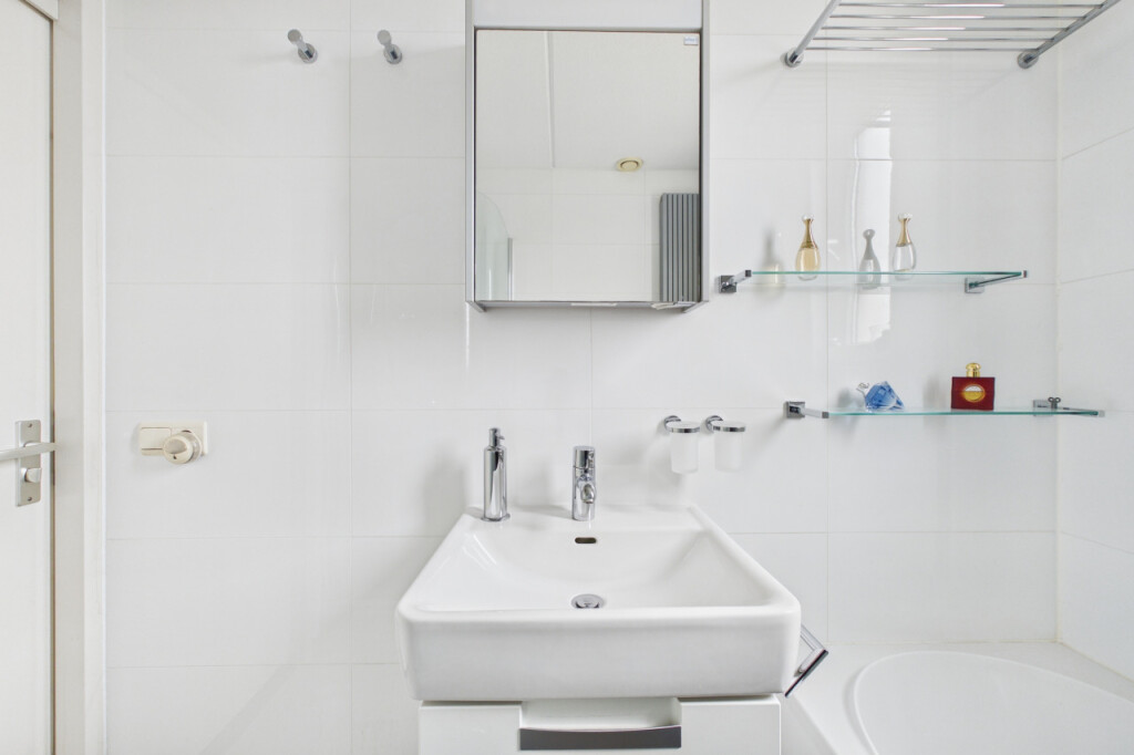 Op de eerste verdieping kom je uit op de overloop die toegang geeft tot drie slaapkamers. De kamers zijn stuk voor stuk netjes afgewerkt en bieden voldoende ruimte voor slapen, werken of studeren. De badkamer is compleet uitgevoerd met een ligbad, douchecabine, wastafel met meubel, toilet en een designradiator.