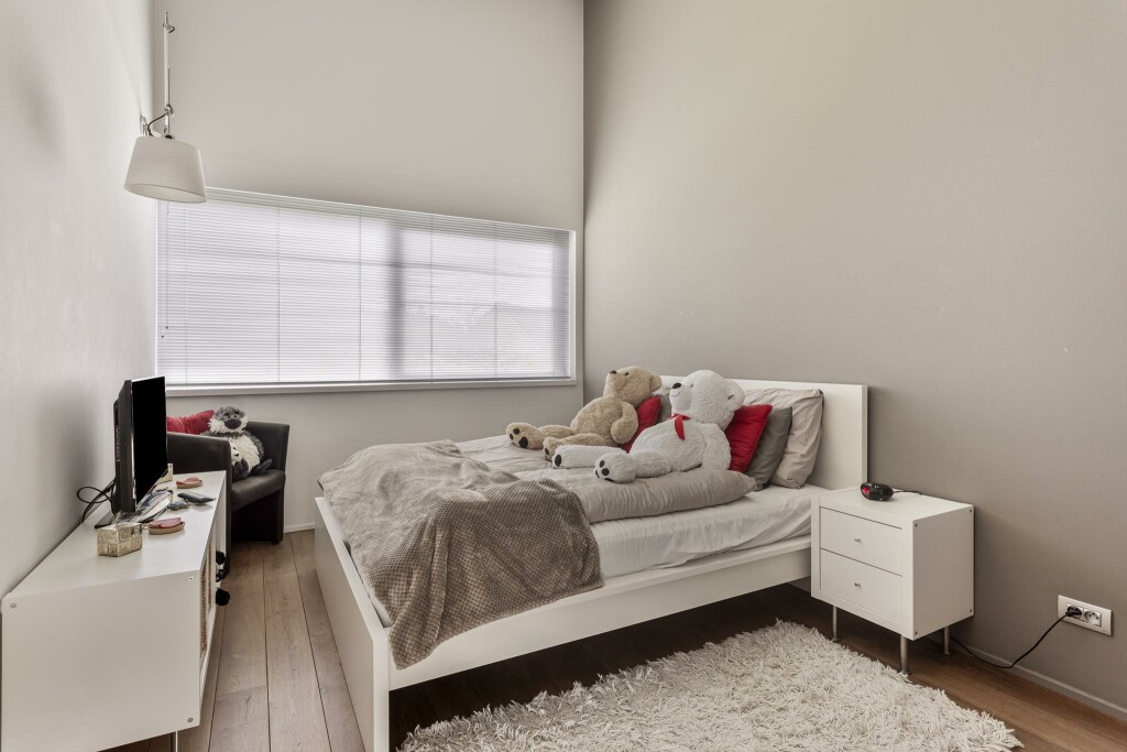 Naast de master bevinden zich nog twee comfortabele slaapkamers en een tweede badkamer met douche en wastafel. Een vierde kamer kan flexibel worden ingezet als logeerkamer, werkruimte, hobbykamer of extra bergruimte. Vanuit deze kamer is tevens de bergzolder bereikbaar.