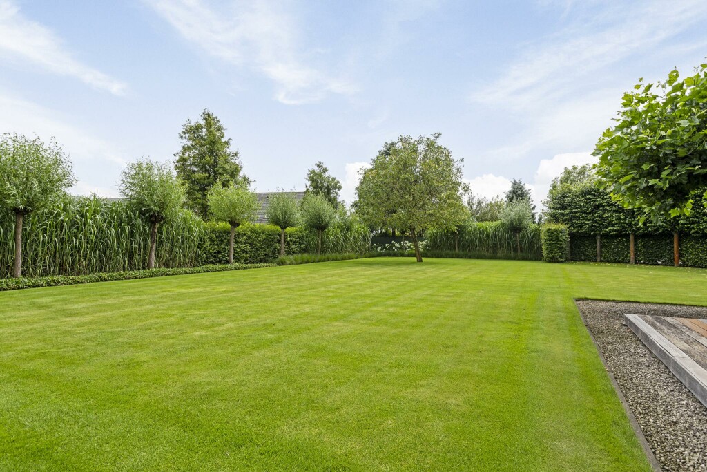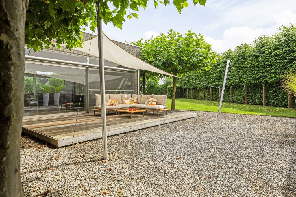 De fraai aangelegde tuin omsluit de woning en biedt optimale privacy dankzij een doordachte beplanting. Meerdere terrassen nodigen uit om in alle rust te genieten van zon of schaduw, afhankelijk van het moment van de dag.