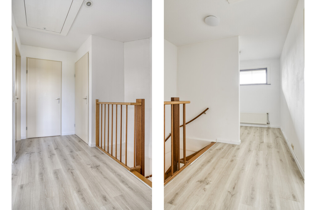 Op de tweede verdieping vind je drie slaapkamers, allemaal voorzien van veel lichtinval door de grote ramen.