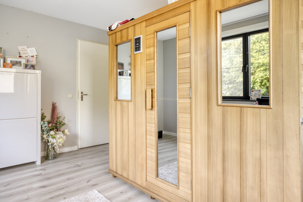 Deze woning is uitgerust met 18 zonnepanelen, vloerverwarming en airconditioning.