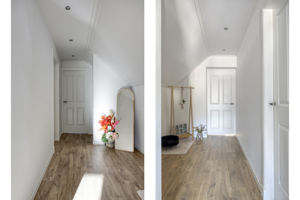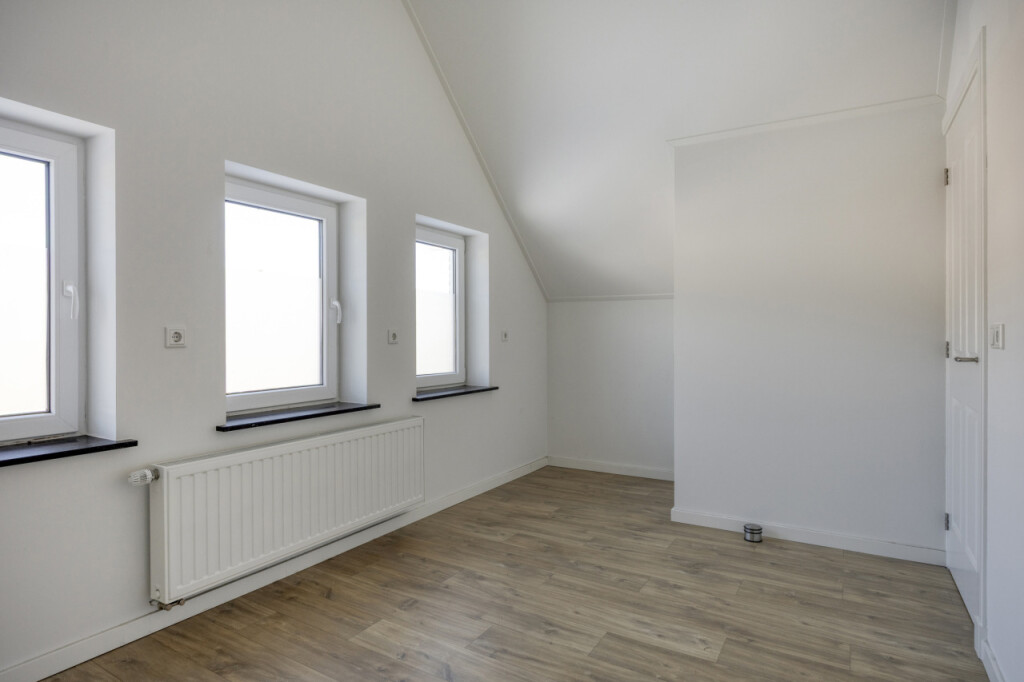 De eerste verdieping beschikt over drie slaapkamers, waarvan één momenteel geen daglicht heeft. Dit is echter eenvoudig te realiseren, waardoor ook deze kamer volwaardig kan worden benut.