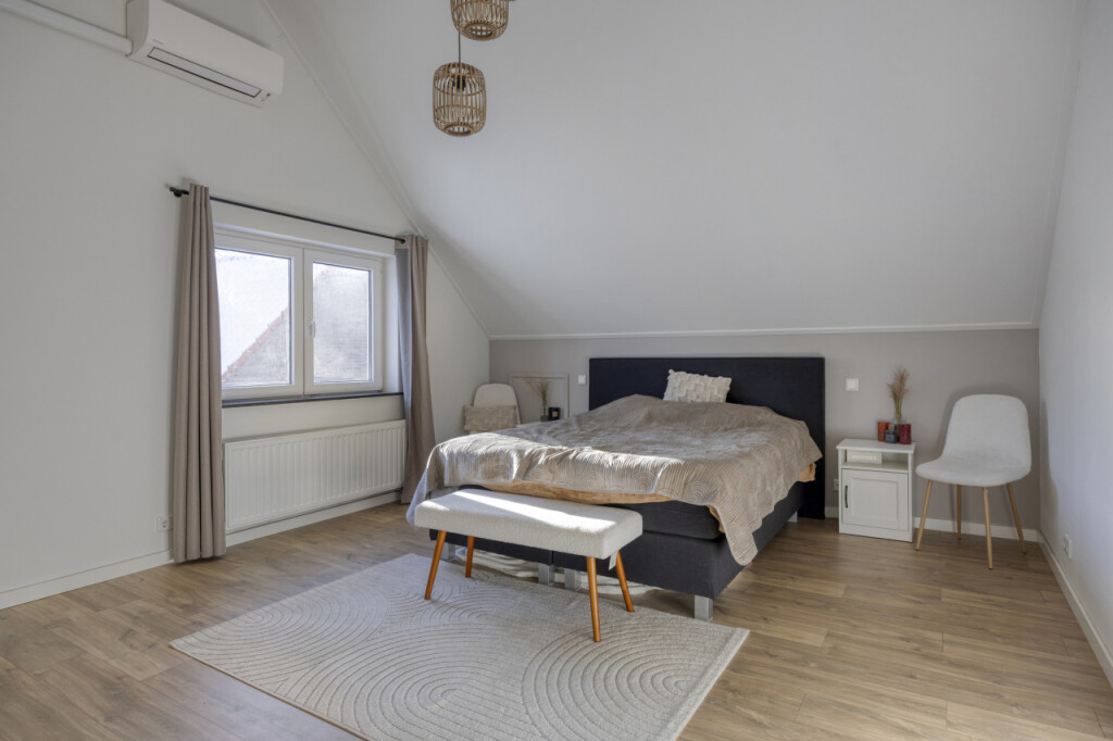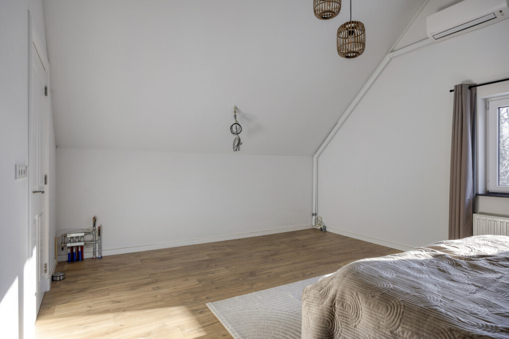 In de master bedroom is een airconditioning aanwezig die zowel kan koelen als verwarmen. Over de gehele verdieping ligt een warme laminaatvloer. Tevens is het hier eenvoudig mogelijk om een extra toilet te realiseren want de benodigde aansluitingen zijn al aanwezig.