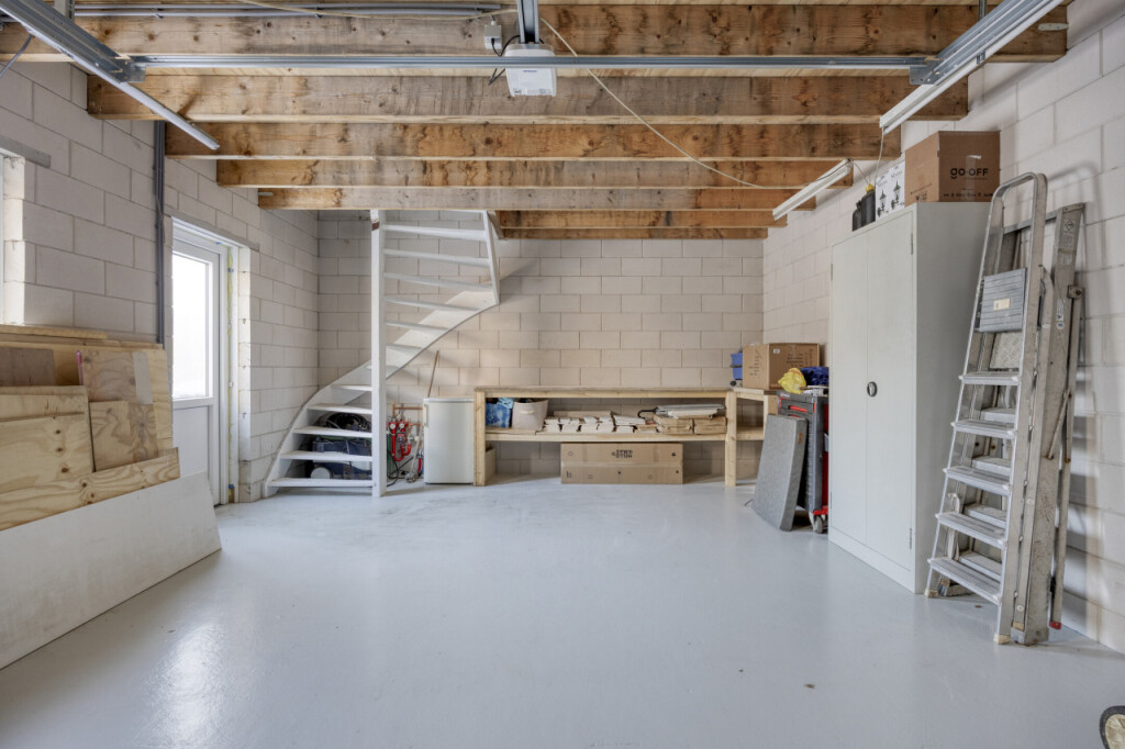 De garage is veel meer dan alleen een plek voor de auto. Deze multifunctionele ruimte is voorzien van elektriciteit, water en vloerverwarming en beschikt over een verdiepingsvloer, ideaal voor extra opslag. Of je nu een werkplaats, hobbyruimte, praktijk aan huis of extra leefruimte zoekt, hier kunt je alle kanten op.