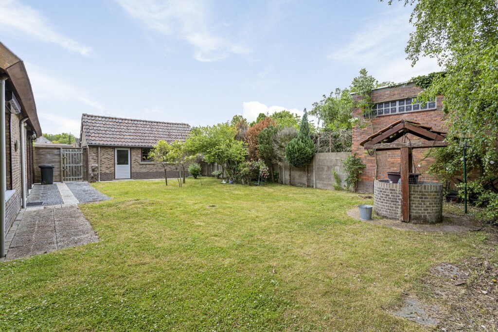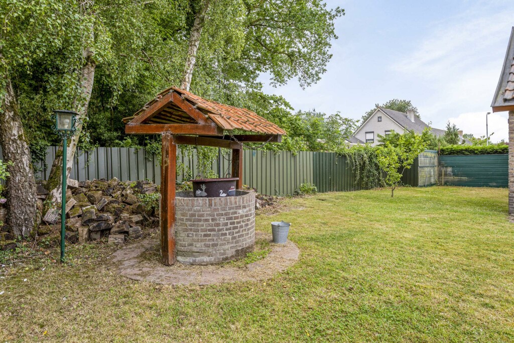 De tuin rondom het huis is verzorgd en nodigt uit tot buitenleven. Een net gazon, volwassen beplanting, bomen en een vrije achterom maken het een prettige buitenruimte. De tuin is zonnig, biedt volop privacy en heeft verschillende hoekjes waar je kunt ontspannen. De charmante waterput voegt een sfeervol element toe en via de achterzijde bereik je eenvoudig de garage.