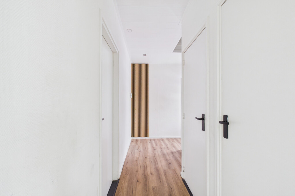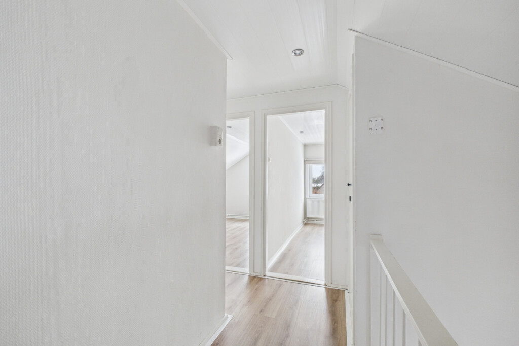 Op de eerste verdieping kom je op de overloop, die toegang biedt tot 3 ruime en comfortabele slaapkamers. De kamers zijn prettig van formaat en praktisch in te delen, waardoor ze geschikt zijn als slaap-, werk- of hobbykamer. Daarnaast zijn er diverse handige bergruimtes aanwezig, wat bijdraagt aan het praktische wooncomfort.