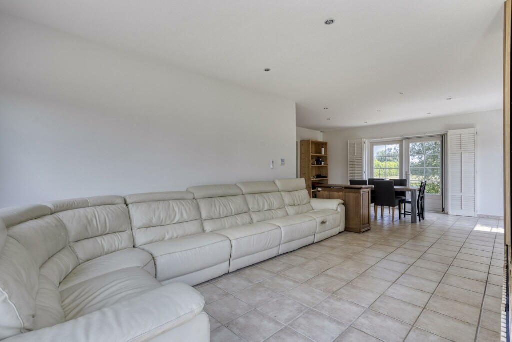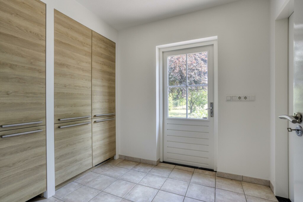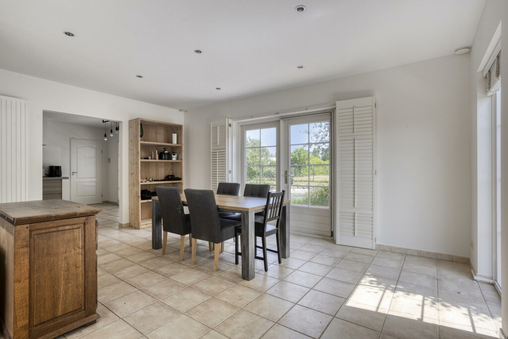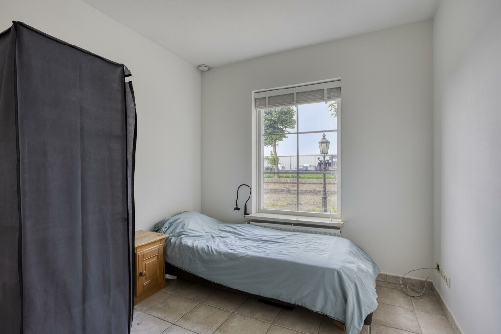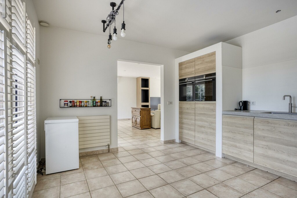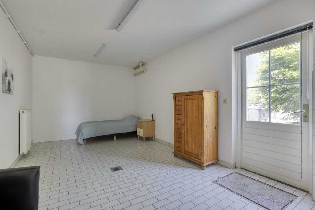 Via de bijkeuken is de garage bereikbaar met zijdeur welke nu dienst doet als slaapkamer.