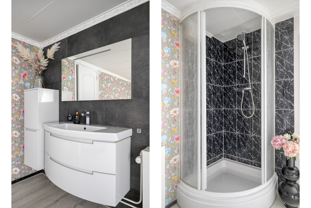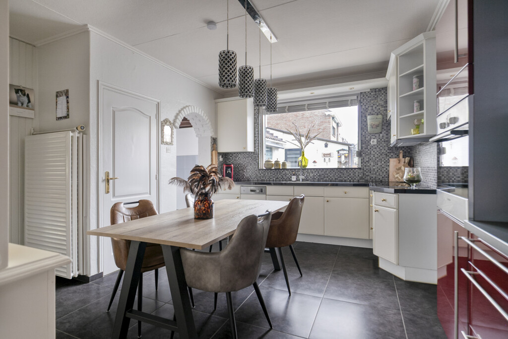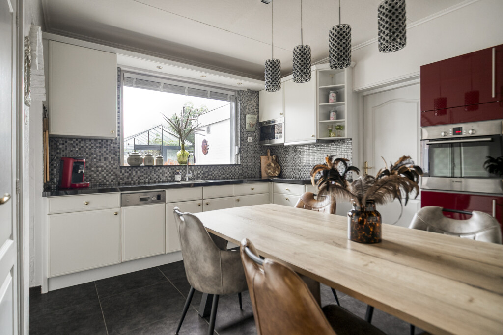 Bij binnenkomst in de hal valt de ruimte direct op. Vanuit hier bereik je het toilet met fonteintje, de meterkast, de trap naar boven en de woonkeuken. De royale keuken is voorzien van inbouwapparatuur en biedt plek voor een gezellige eettafel. Aansluitend ligt de bijkeuken met witgoedaansluiting en toegang tot de achtertuin.