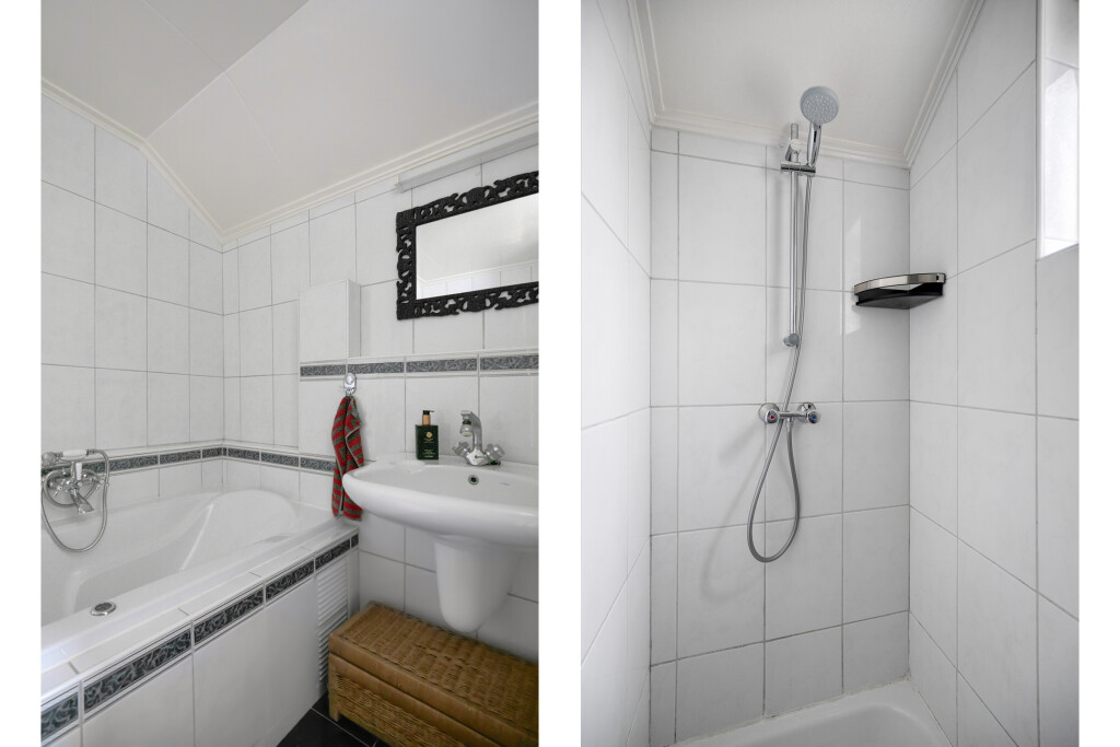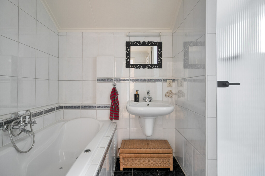 Op de eerste verdieping vind je drie ruime slaapkamers, waarvan twee met vaste kasten. Eén slaapkamer heeft bovendien een balkon, een fijn plekje om even buiten te zitten. De overloop heeft een vaste kast en de badkamer is netjes ingericht met ligbad, douche, toilet en wastafel.