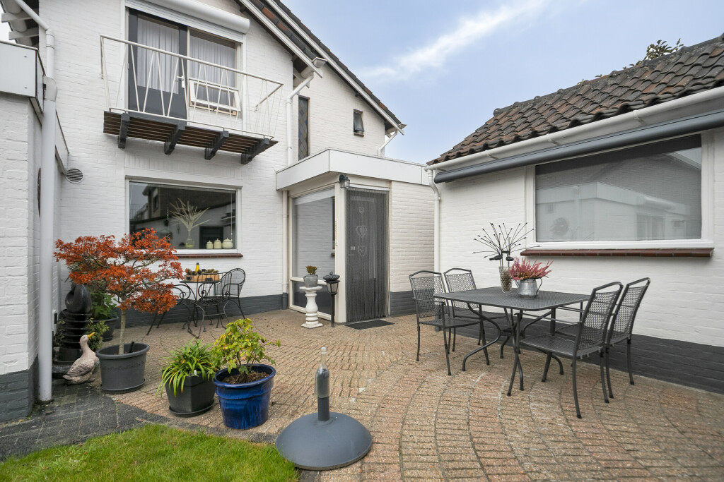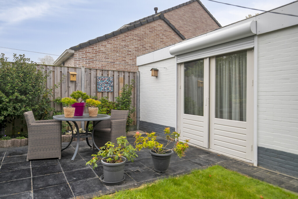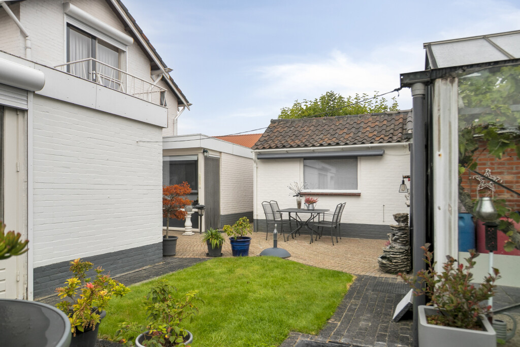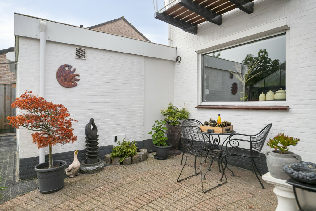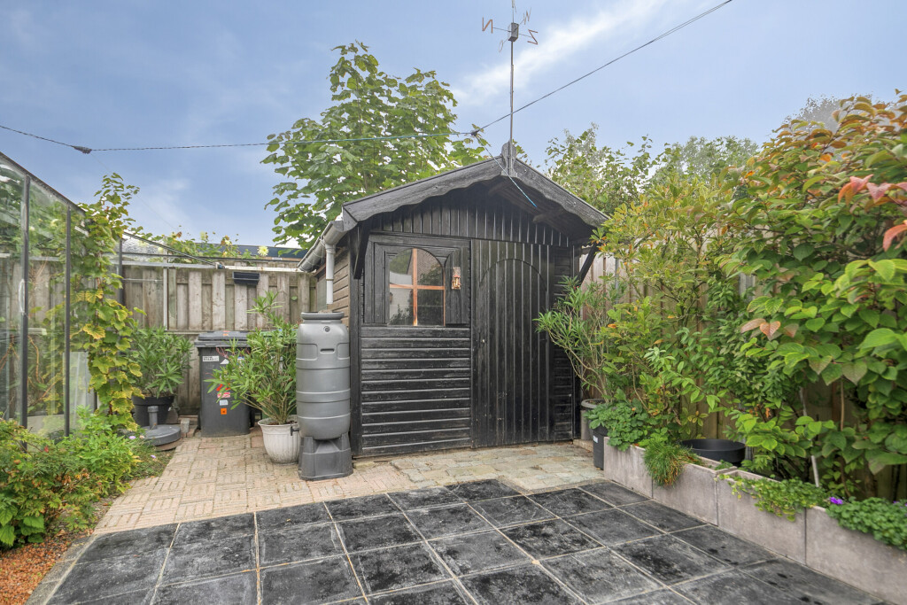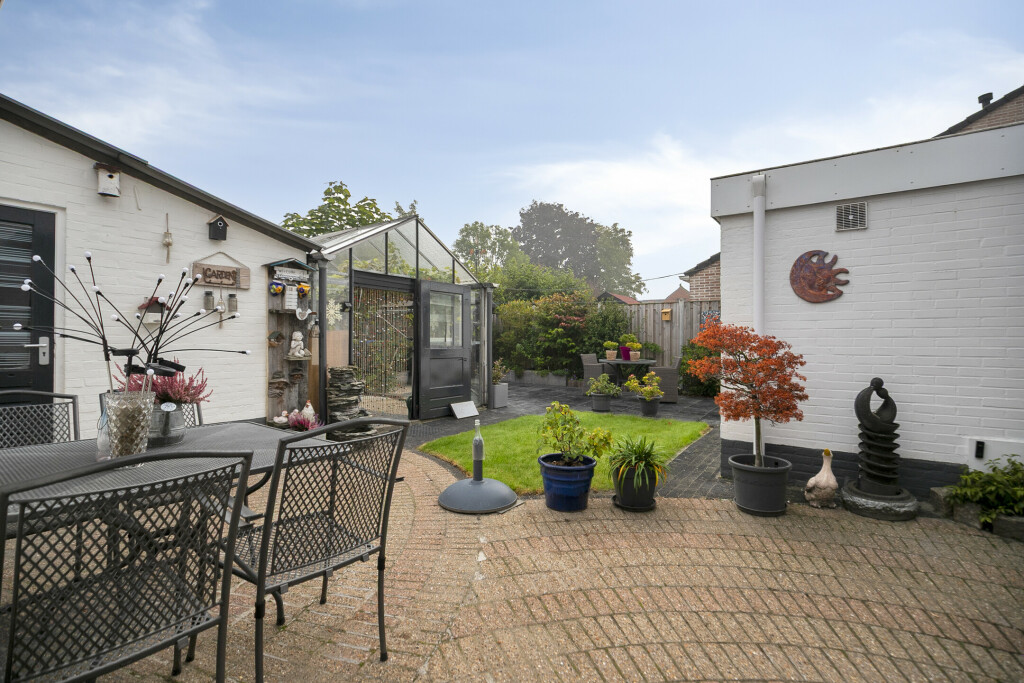 De tuin is verzorgd aangelegd met gazon, borders en meerdere terrassen, zodat je de hele dag een plekje in zon of schaduw vindt. Achterin staat een kas en via de vrije achterom is de tuin goed bereikbaar. De garage heeft een elektrische deur en elektra, en grenst aan een extra berging – ideaal voor fietsen, tuingereedschap of opslag. Dankzij de ligging op het zuidoosten geniet je hier volop van de zon.