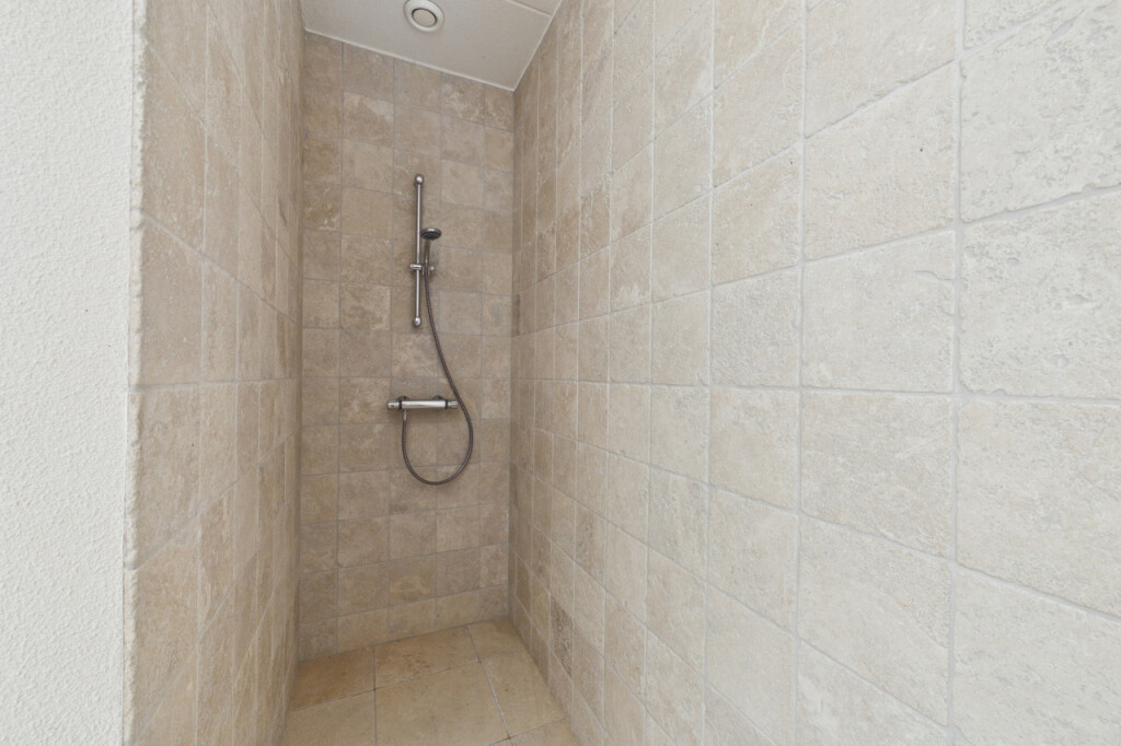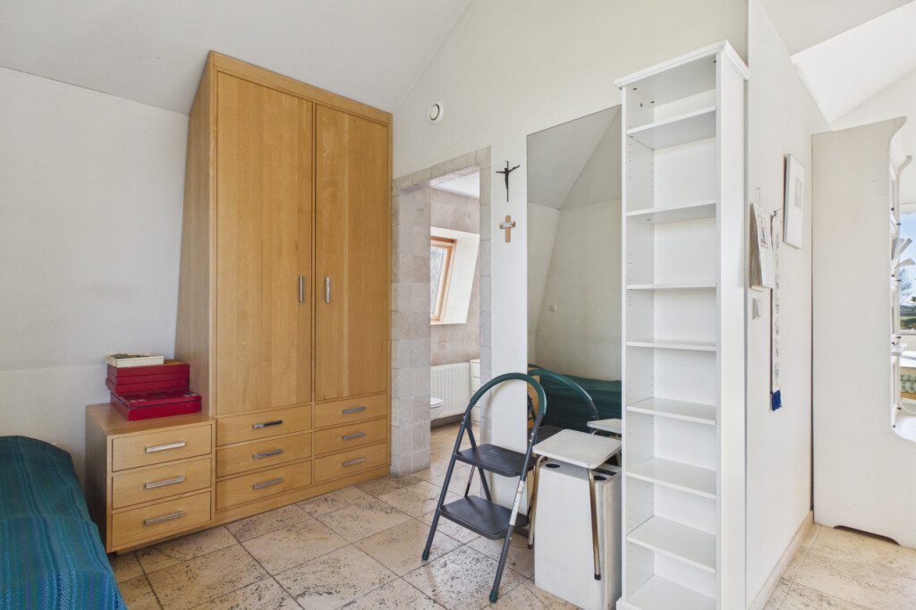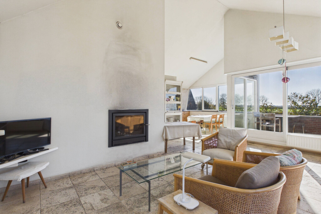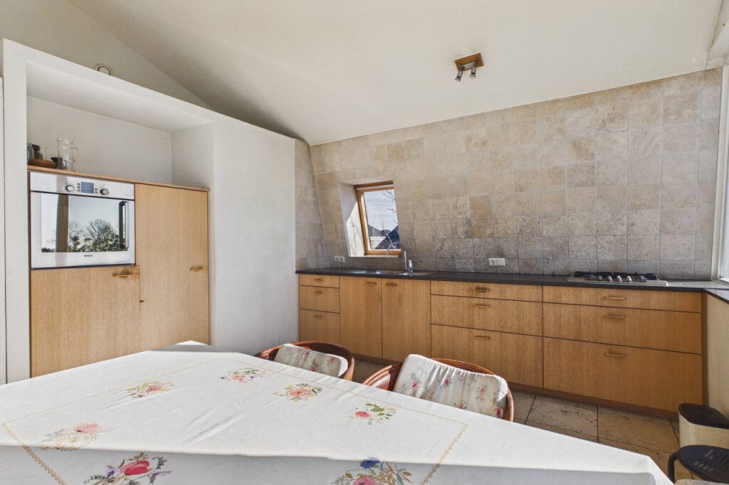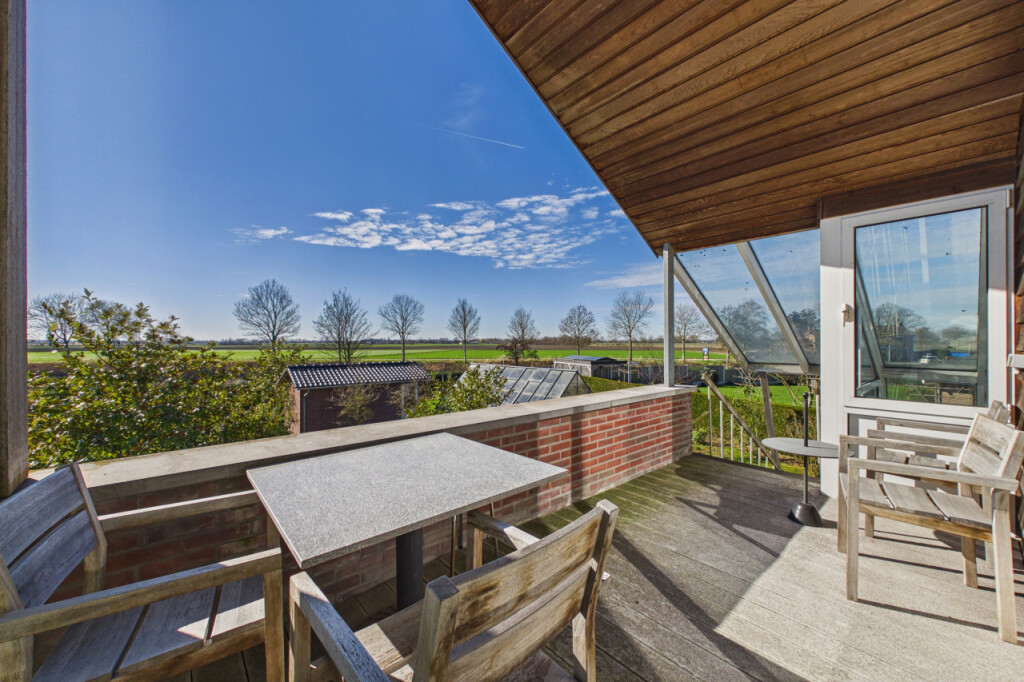 Op de eerste verdieping bevindt zich de woonkamer, die dankzij de grote ramen veel lichtinval heeft. Ook is er een sfeervolle haard (allesbrander) aanwezig. Vanuit de woonkamer heb je toegang tot het balkon, waar je een prachtig uitzicht hebt over het Zeeuws-Vlaamse landschap. De open keuken is geplaatst in een rechte opstelling en is voorzien van een gaskookplaat, combi-oven, koelkast en een dubbele spoelbak. Verder vind je op deze verdieping een ruime slaapkamer met een badkamer ensuite. Deze badkamer is ingericht met een inloopdouche, wastafel en toilet, waardoor ook deze verdieping over alle comfort beschikt.