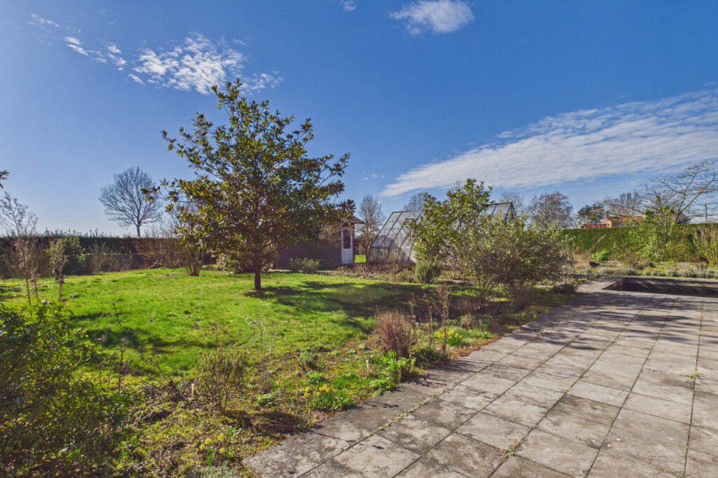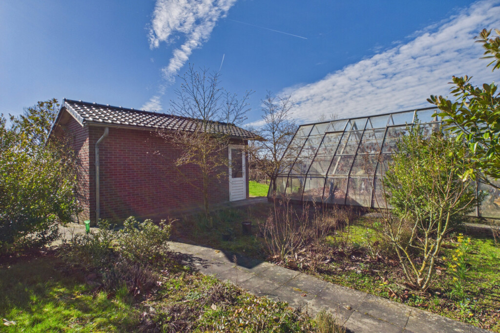 De tuin rondom de woning is royaal en prachtig groen aangelegd. Dankzij de vrije ligging geniet je hier van veel rust en privacy. Er is volop ruimte om te zitten, te tuinieren of simpelweg te genieten van het buitenleven. In de tuin bevinden zich bovendien een berging en een tuinkas, wat het geheel extra compleet maakt voor liefhebbers van tuinieren of hobby’s.