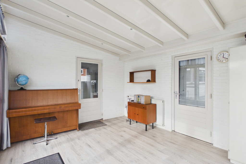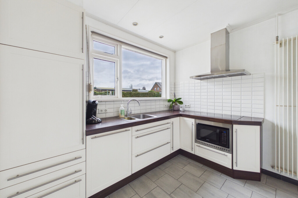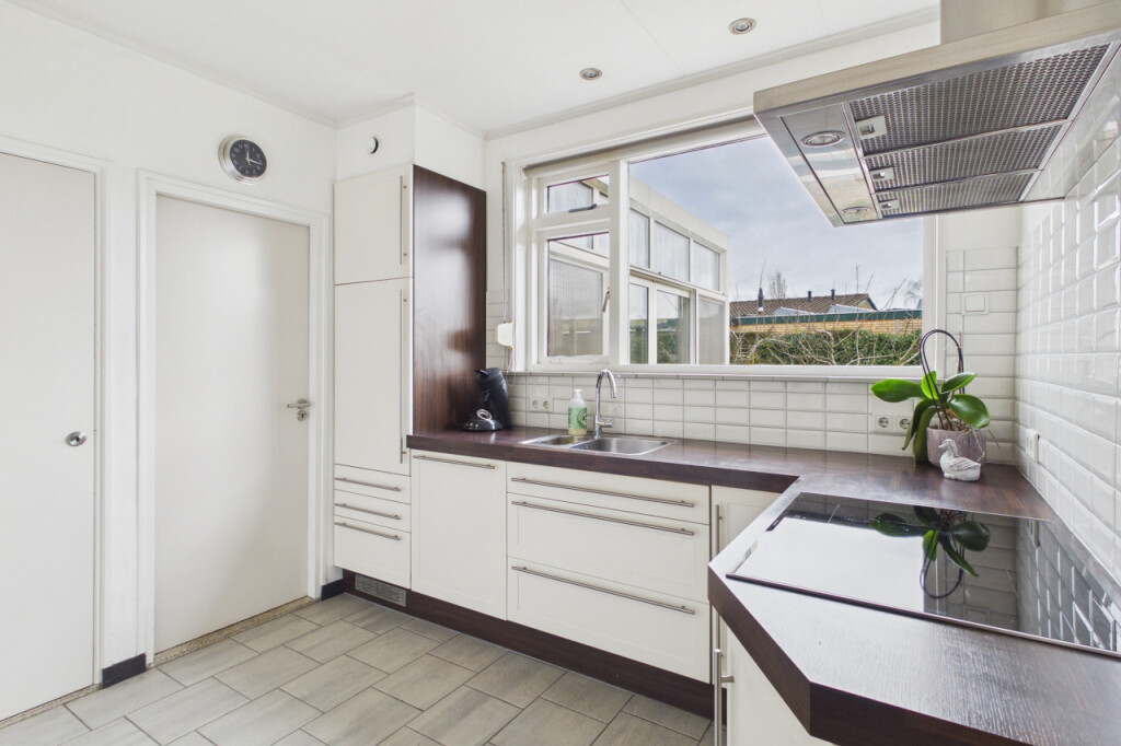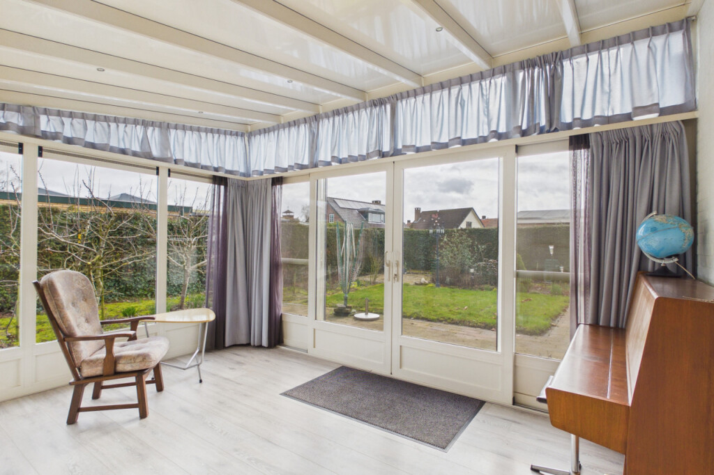 Je komt de woning binnen in de hal met toilet, meterkast, berging en toegang tot de diverse leefruimtes. De lichte woonkamer is voorzien van een laminaatvloer en geniet van een prettige lichtinval. De dichte keuken is geplaatst in een hoekopstelling en uitgerust met een inductiekookplaat, afzuigkap, combi-oven, koelkast, vaatwasser en een dubbele spoelbak. Vanuit de keuken bereik je de praktische bijkeuken met uitstortbak. De bijkeuken biedt toegang tot de serre, een heerlijke extra leefruimte met schuifpui naar de tuin, waardoor binnen en buiten mooi in elkaar overlopen. Vanuit de serre is tevens de ruime garage bereikbaar. De badkamer is ingericht met een douche en wastafel. Verder beschikt de woning over twee slaapkamers. Daarnaast is er compacte bergzolder, ideaal voor het opbergen van seizoensspullen.