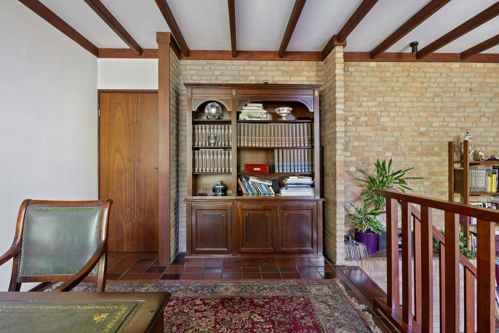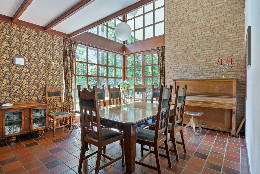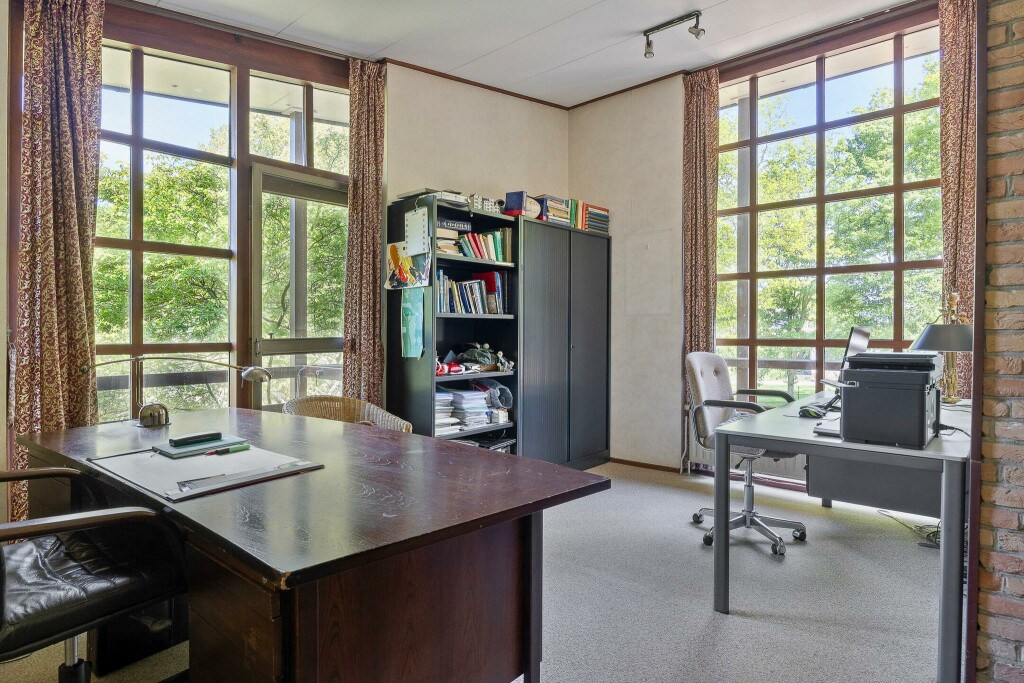 Verscholen tussen het groen staat dit karakteristieke landhuis met bijzondere architectuur. Door de huidige bewoners geheel naar eigen ontwerp in Engelse stijl gebouwd en altijd meer veel zorg en aandacht onderhouden. Absoluut een woning die je vanbinnen gezien moet hebben om te ervaren wat voor mogelijkheden deze woning te bieden heeft. De woning is zeer ruim van opzet en biedt met zijn 5 slaapkamers en 2 badkamers ruimte voor een groot of samengesteld gezin. Ook werken aan huis is geen probleem. Er zijn diverse ruimtes in de woning geschikt als kantoor of werkruimte.