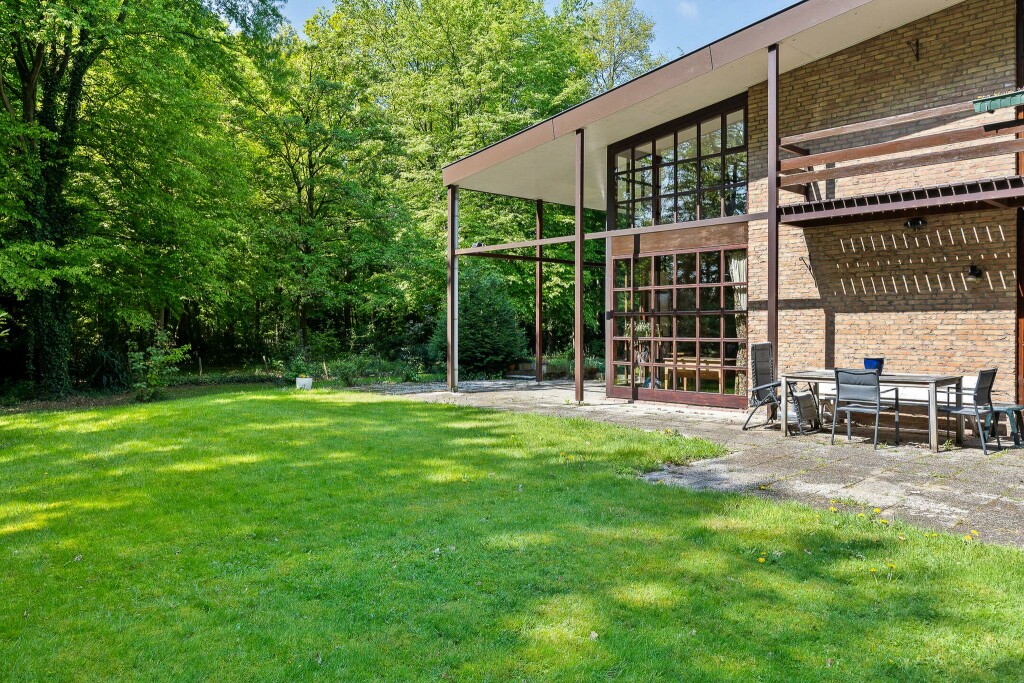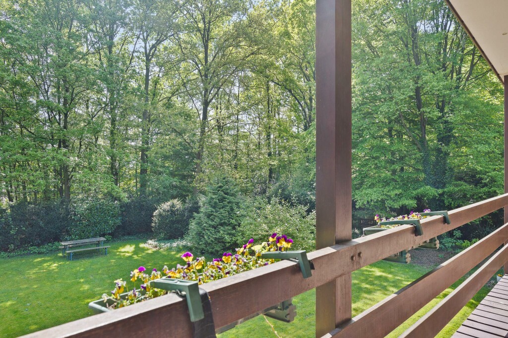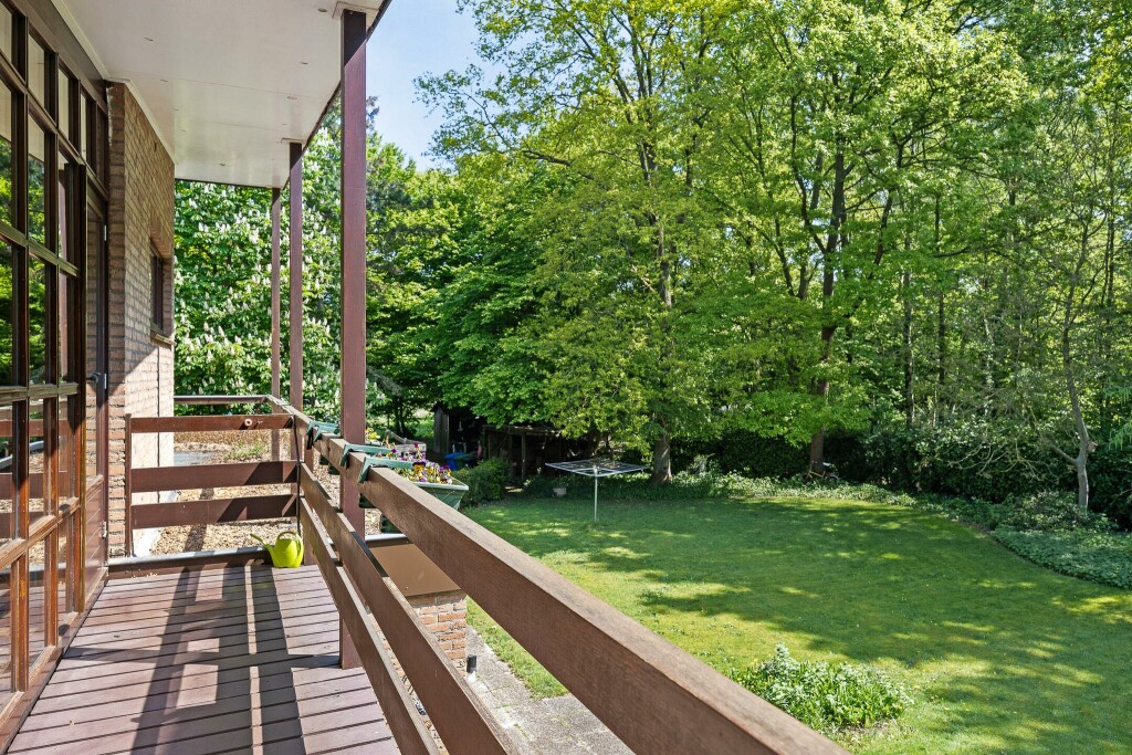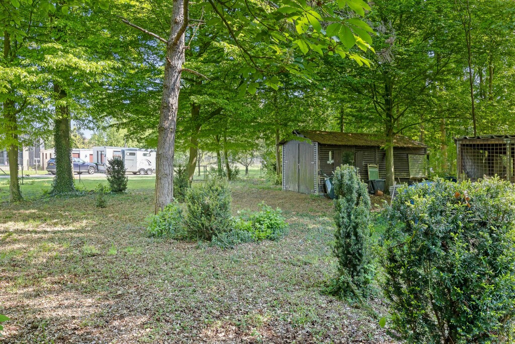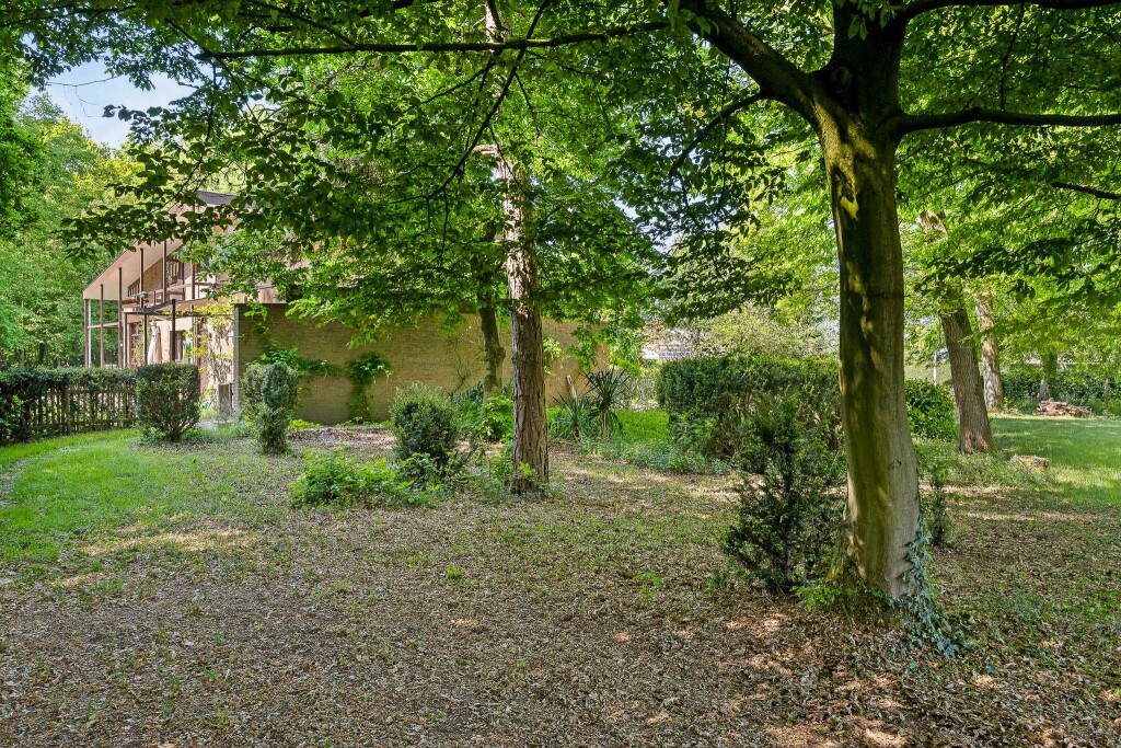 De tuin is werkelijk een oase van groen en heeft een parkachtige uitstraling met een groot gazon rondom de woning met bos. De hoge hagen bieden extra veel privacy en scheiden het gehele perceel af van de weg en de omliggende woningen waardoor je hier optimaal kunt genieten van alle rust.