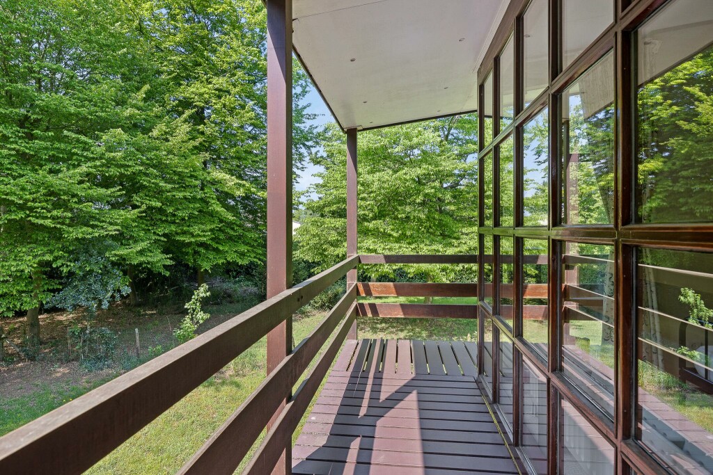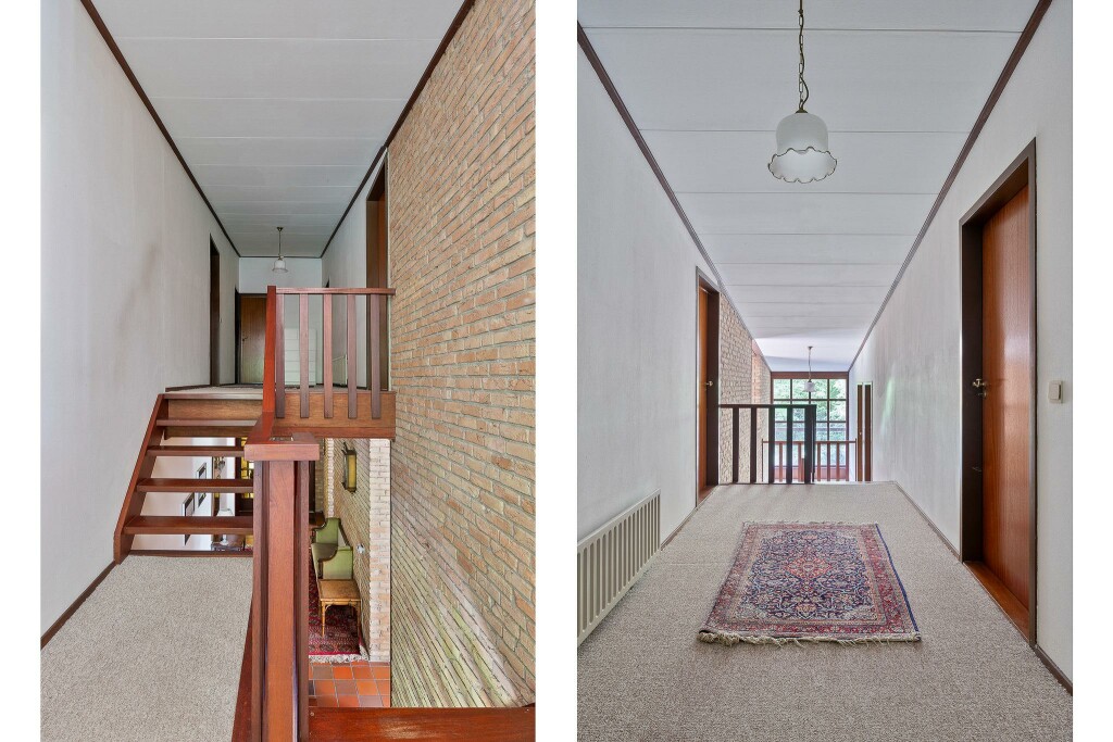 Bijzonder aan de woning is de speelse indeling op de begane grond met hoogteverschillen en op de verdieping de grote doorlopende balkons aan de slaapkamers.