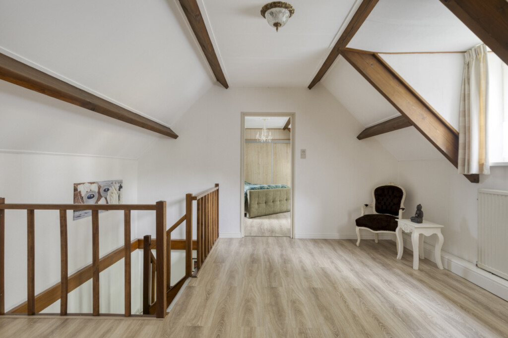 Op de eerste verdieping kom je via de overloop bij drie slaapkamers, verdeeld over de linker- en rechterzijde van de woning. De grootste slaapkamer bevindt zich aan de linkerkant en biedt volop ruimte voor een groot bed en een royale kastopstelling. De twee slaapkamers aan de rechterzijde zijn praktisch van formaat en goed te gebruiken als kinderkamer, logeerkamer of werkkamer. Dankzij de ligging aan weerszijden van de woning hebben de kamers een prettige indeling en voldoende lichtinval, wat bijdraagt aan een fijne, rustige sfeer op deze verdieping.