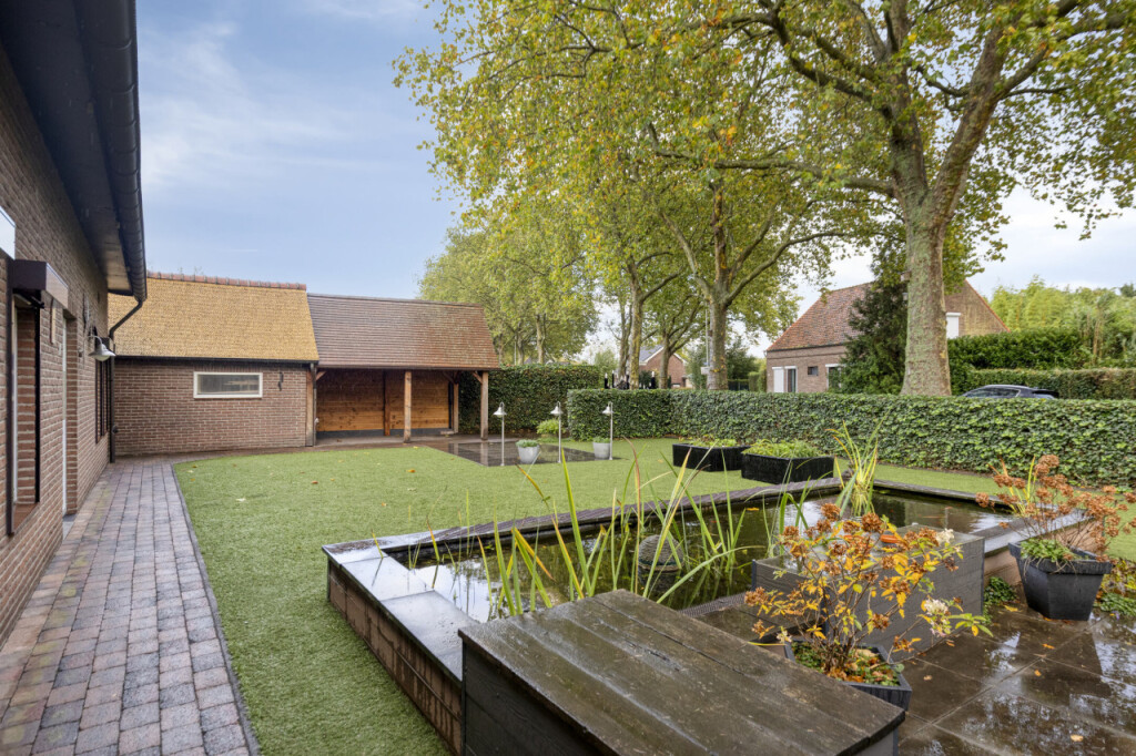 De tuin bevindt zich voornamelijk aan de voorzijde van de woning en biedt een prettige plek om van de zon te genieten of te ontspannen in de schaduw. Met een gazon, groenbeplanting en verschillende zitmogelijkheden is het een uitnodigende buitenruimte, terwijl de woning toch beschut en vrij ligt ten opzichte van de straat.