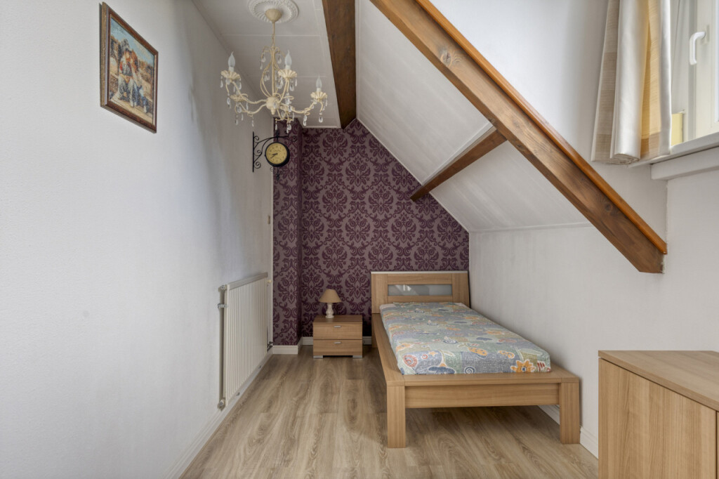 Op de eerste verdieping kom je via de overloop bij drie slaapkamers, verdeeld over de linker- en rechterzijde van de woning. De grootste slaapkamer bevindt zich aan de linkerkant en biedt volop ruimte voor een groot bed en een royale kastopstelling. De twee slaapkamers aan de rechterzijde zijn praktisch van formaat en goed te gebruiken als kinderkamer, logeerkamer of werkkamer. Dankzij de ligging aan weerszijden van de woning hebben de kamers een prettige indeling en voldoende lichtinval, wat bijdraagt aan een fijne, rustige sfeer op deze verdieping.