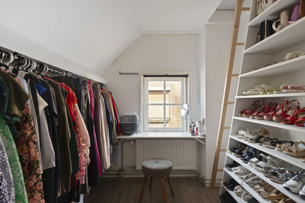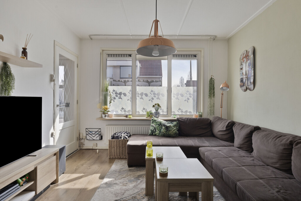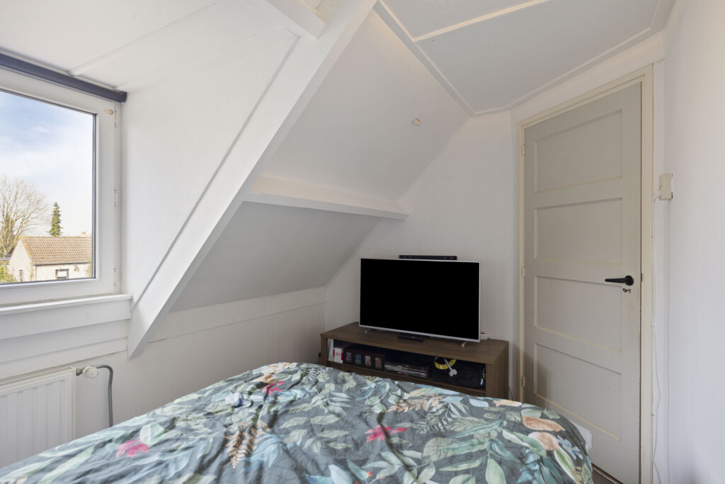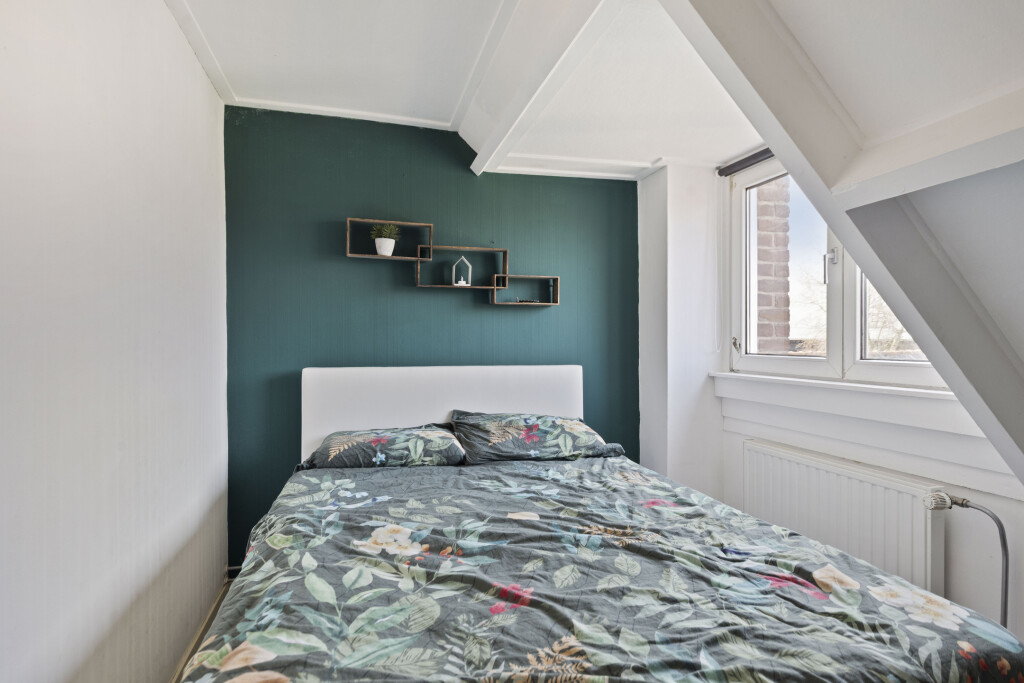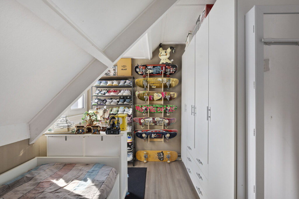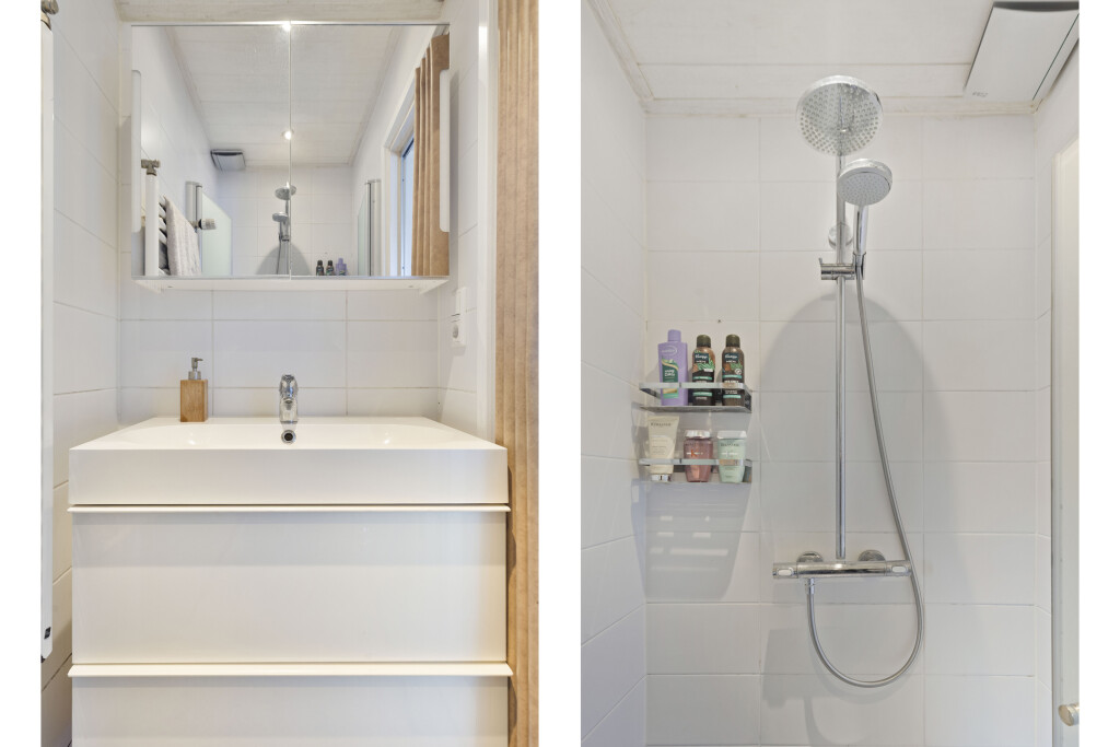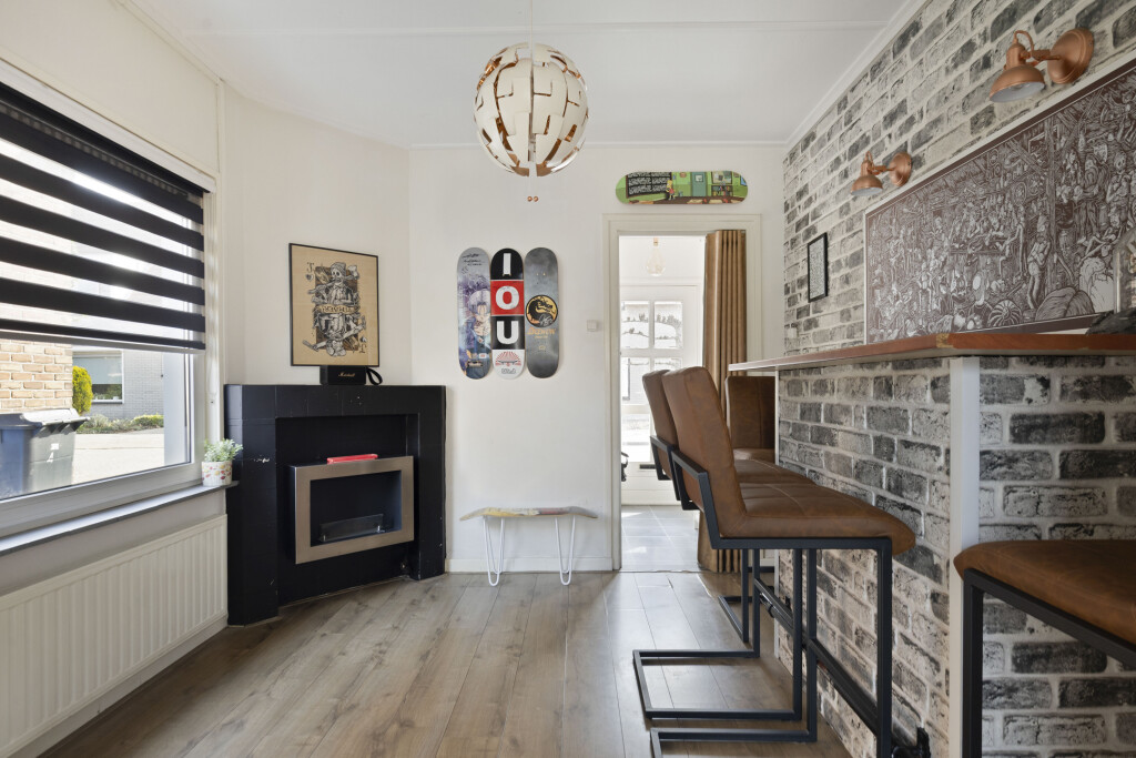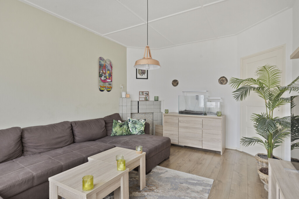De woonkamer is voorzien van een laminaat vloer, een rolluik voor extra privacy én heeft nog een originele sierschouw. Tevens is er nog een ingebouwde hoekkast zodat spelletjes en administratie netjes kan worden opgeborgen.