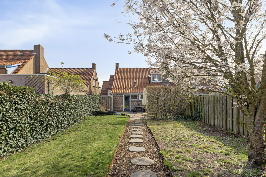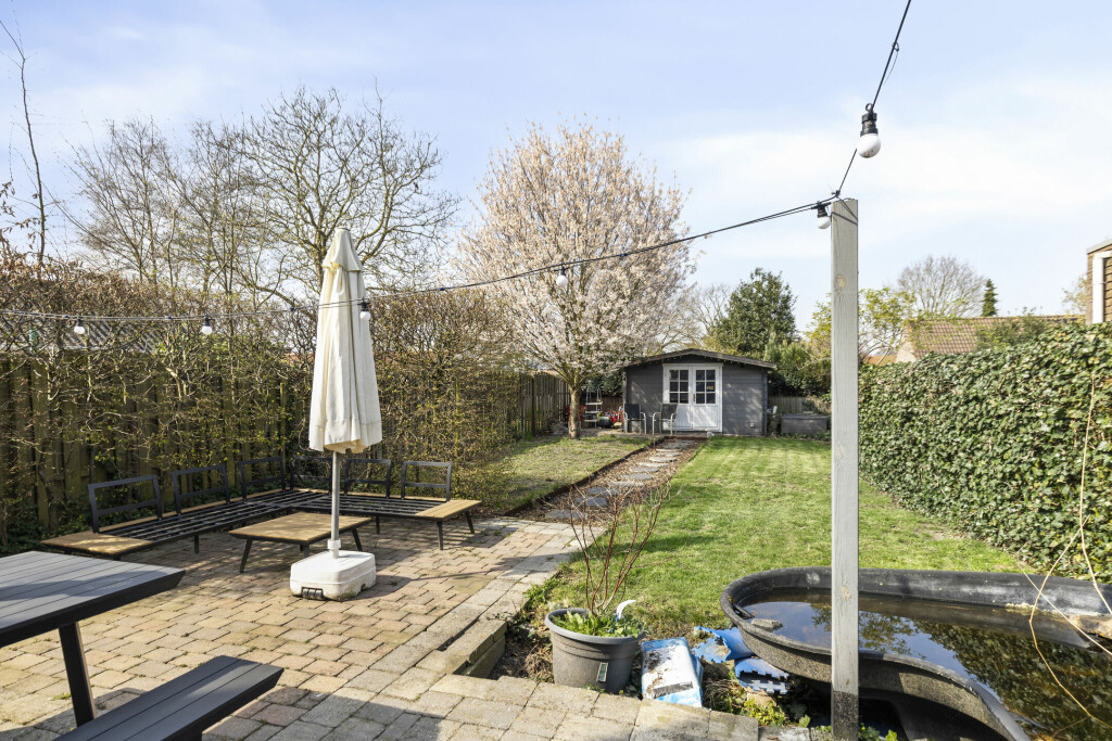 De diepe tuin is ingedeeld met een terras aan de woning, een gazon en genoeg ruimte voor de hobbyteler. Achterin staat nog een ruime houten berging die voor meerdere doeleinden te gebruiken is. De tuin is grotendeels op het westen gesitueerd zodat je lang van de avondzon kan genieten.