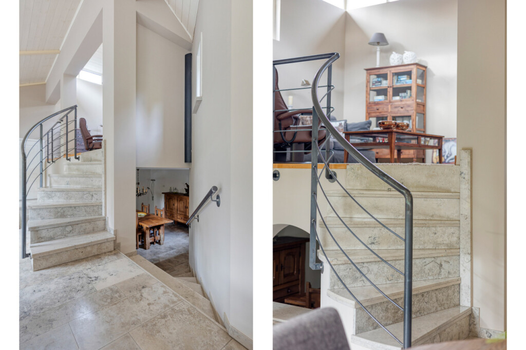 Vanaf de begane grond zijn er nog 2 mooie leefruimtes bereikbaar via mooie marmeren trappen.
