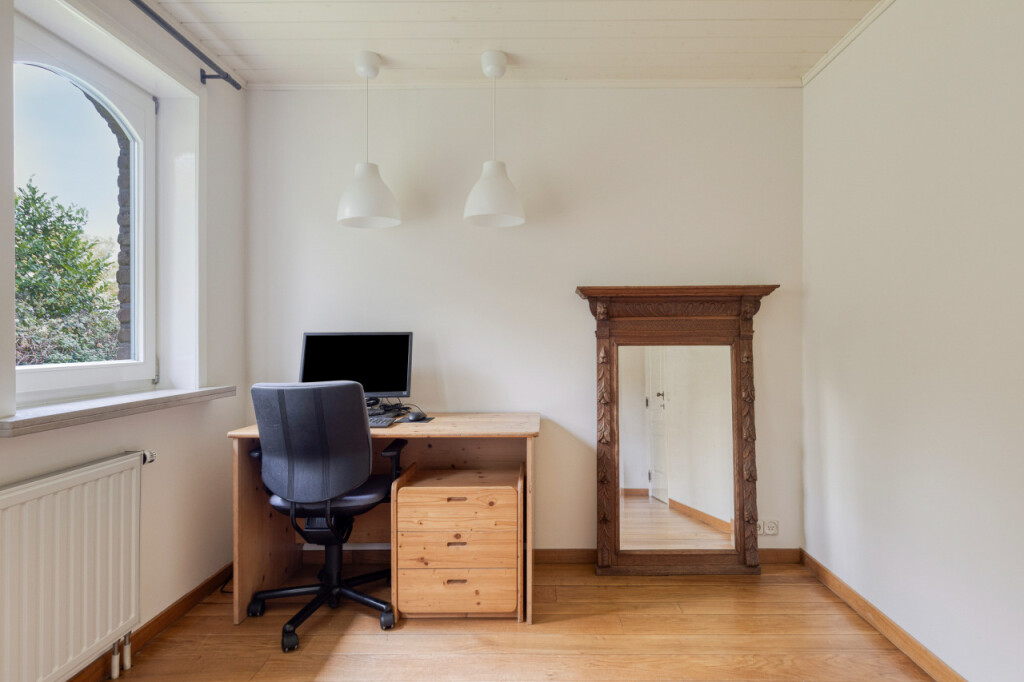 De diepe, zonnige tuin is een waar paradijs. Hier ervaart u volledige privacy en stilte, omringd door volwassen beplanting, gras en het bos dat letterlijk aan de tuin grenst. Vanuit uw terras loopt u zo de natuur in; ideaal voor een ochtendwandeling of een rustige middag in de zon.