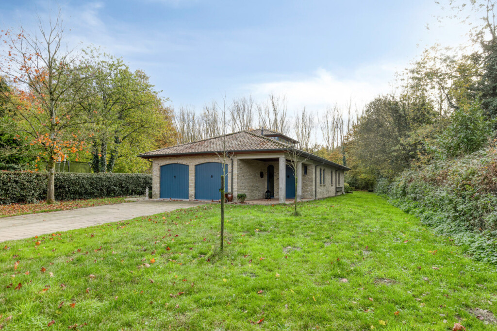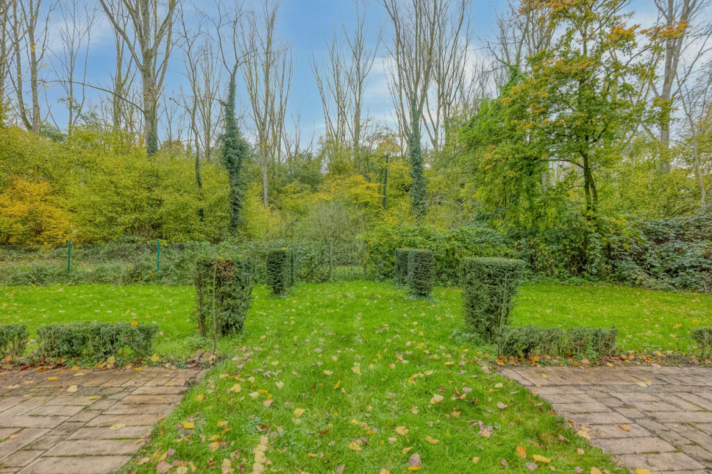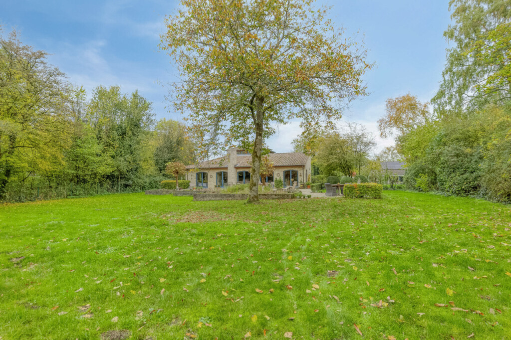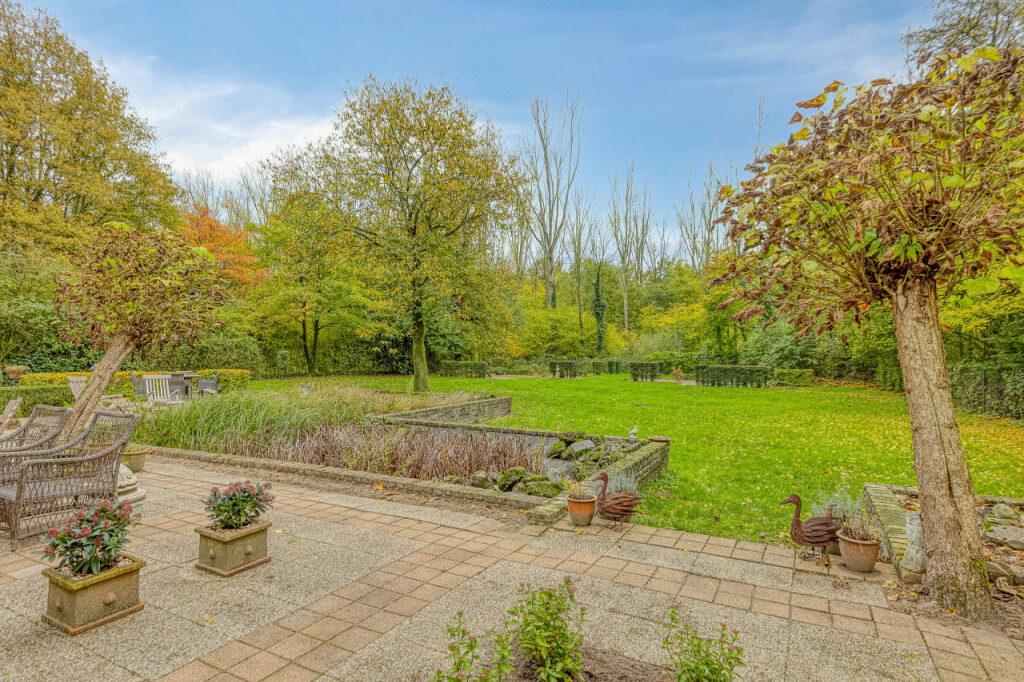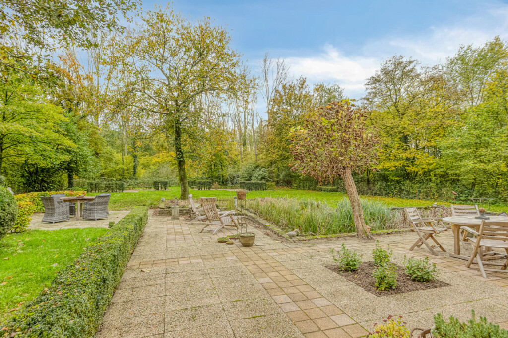 Achter het terras een grote vijverpartij. Achterin de tuin zijn er nog een 2-tal terrassen zodat er altijd een plekje in de zon of schaduw te vinden is om te genieten van al het moois. Helemaal achterin de tuin is er een poortje wat direct toegang geeft tot het bos.