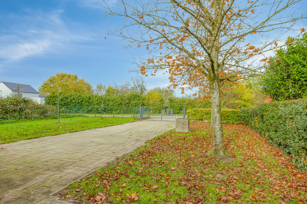 Aan de voorzijde van de woning is er een zeer ruime oprit tot aan de dubbele garage. Het gehele perceel is door hekwerk omringt. Aan de straatzijde is er nog een aparte parkeerplaats gecreëerd.