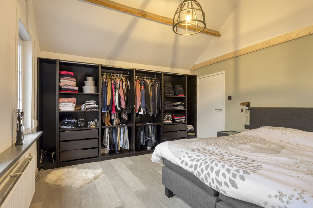 Via een uitschuiftrap is de bergzolder bereikbaar, ideaal voor het opbergen van niet alledaagse spullen.