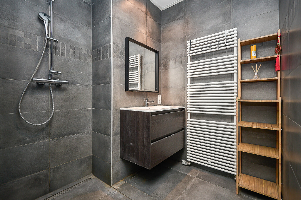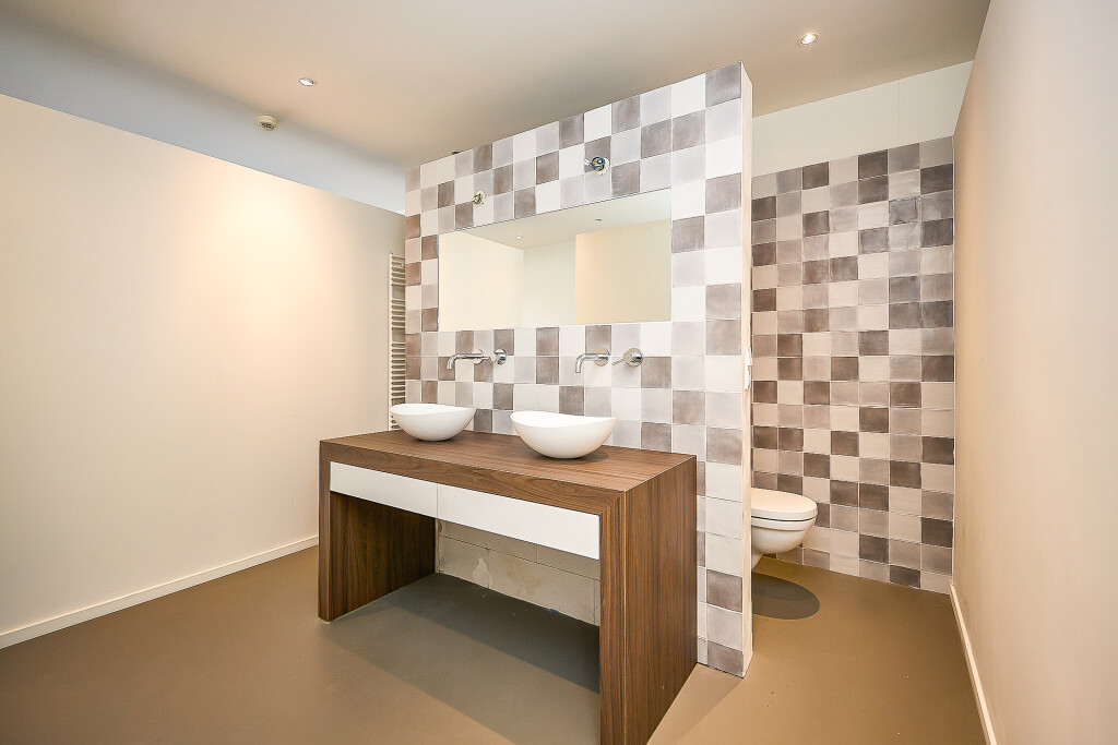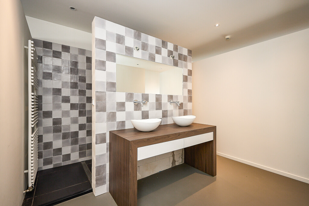 Aan de andere zijde van de vide is er toegang tot een ruime kamer aan de voorzijde van de woning en een kamer aan de achterzijde van de woning met tussenin een 2e badkamer. De badkamer is voorzien van een dubbele wastafel, douche en toilet.