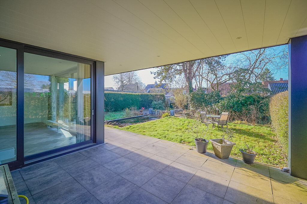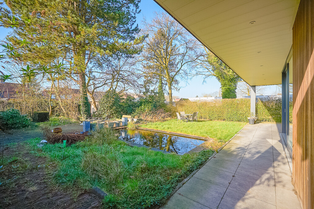 Grenzend aan de woning een heerlijk ruim overdekt terras vanwaar je prachtig zicht hebt op de diepe en zonnige achtertuin. De tuin heeft een deel gazon met vijverpartij en prachtige mooie struiken als rododendrons en Japanse sierkers. In het midden van de tuin een vlonderterras waar u heerlijk in de zon kunt genieten van al dit moois.