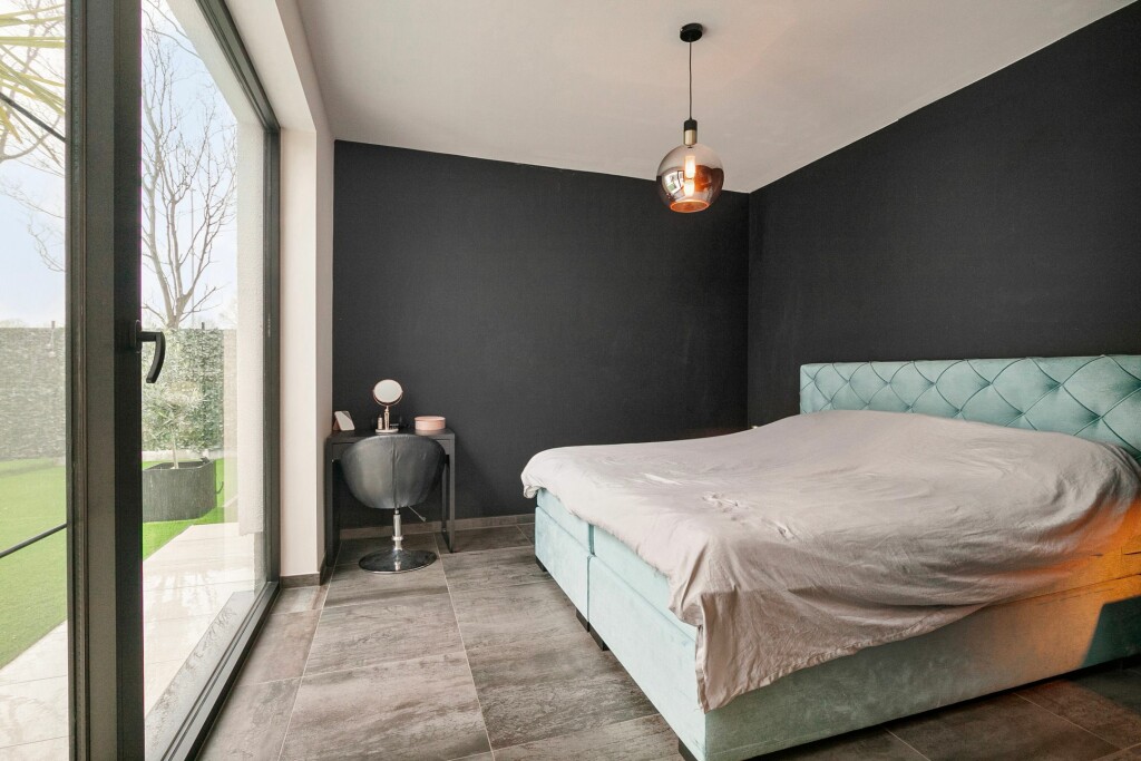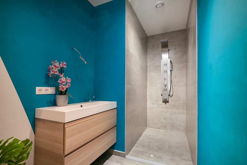 Aan de voorzijde van de woning is nog een ruime tweede slaapkamer gelegen. Hier bevindt zich nog een tweede badkamer voorzien van wastafel met meubel en inloopdouche.